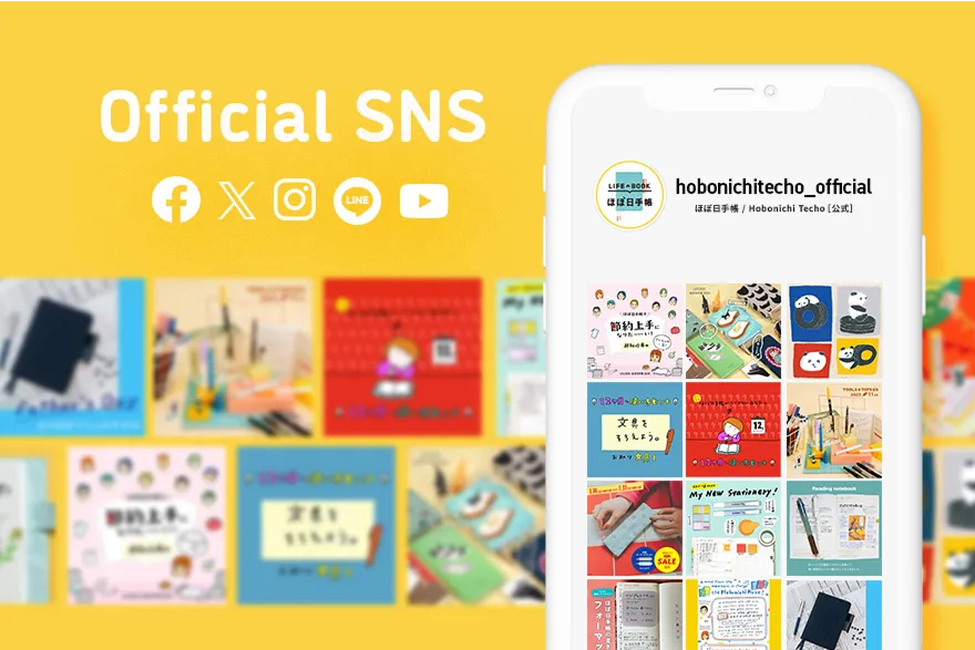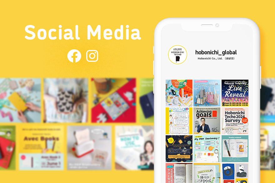 We post updates on Instagram, YouTube, and Facebook to share usage examples for the Hobonichi Techo, our recommendations for accessories and stationery, information about new products, and other ways to enjoy the techo.