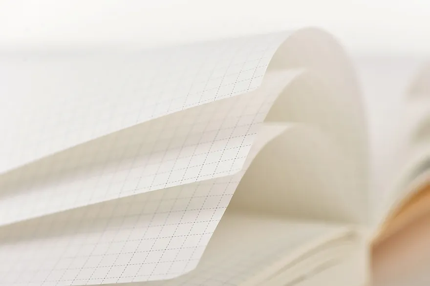 After much trial and error, our techo pages have 3.7mm* squares, which are the perfect size to either write within the lines, or ignore the lines and write outside them. The graph paper design makes it easy to draw charts and graphs, and the lines can provide a guide for pasting in papers or photographs totally straight.