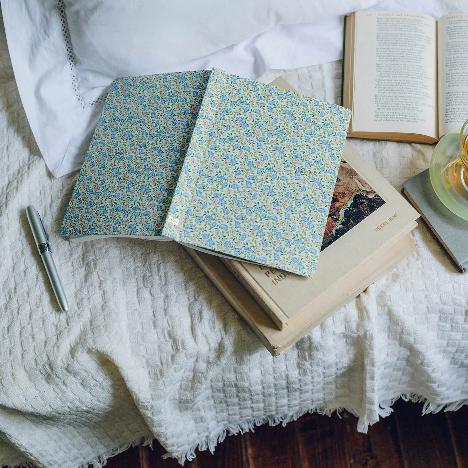 Sasha Kiora is a small floral pattern reminiscent of the pastoral illustrations by Kate Greenaway, a representative picture book artist of the latter half of 19th century Britain. With pink and light blue anemones drifting through the breeze, and small buds and leaves peeking through, this elegant design is reminiscent of a windy meadow.