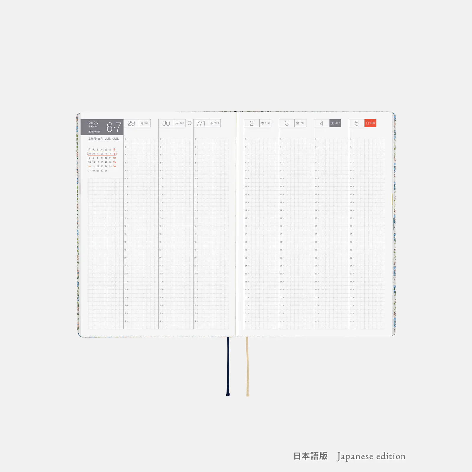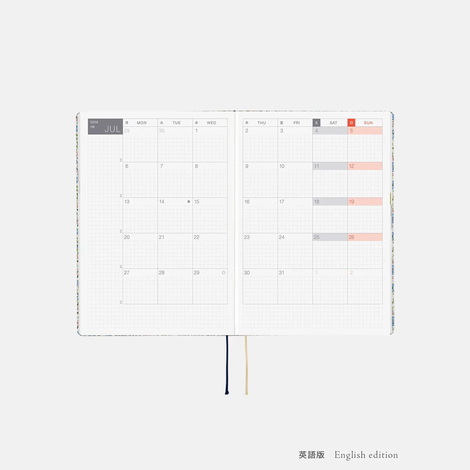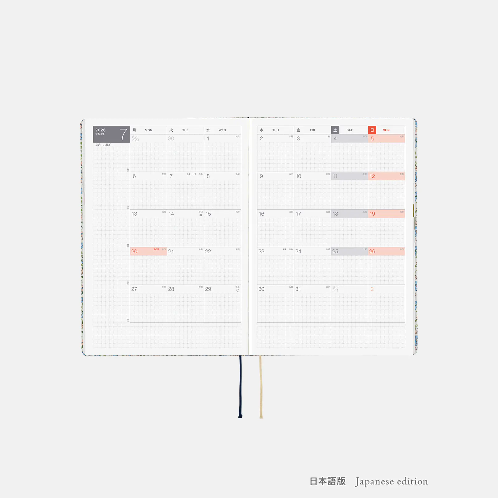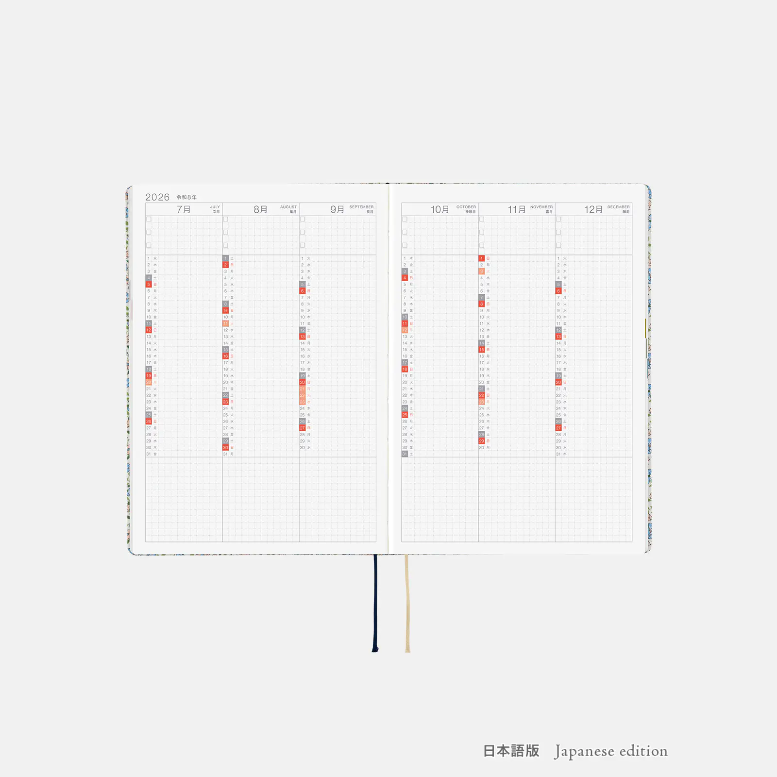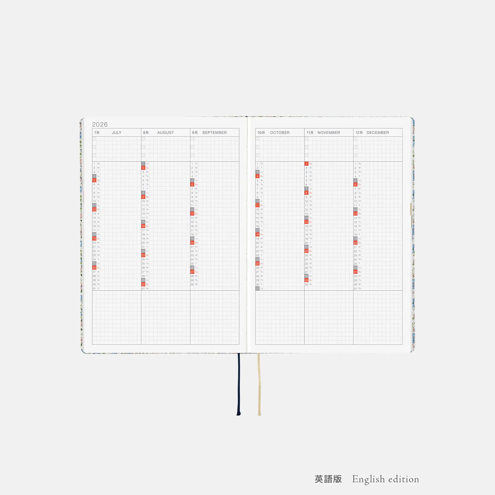 | Bonus Pages | Time Table / Graph Paper / Favorites / My 100 / Memories 2026 / 12 Switches to Help You Focus / For a Comfortable Night’s Sleep / Solar Terms / Emergency Preparedness / Gifts / Age Table / Conversion Chart / Getting the most of Hobonichi / Addresses / Personal Notes |
