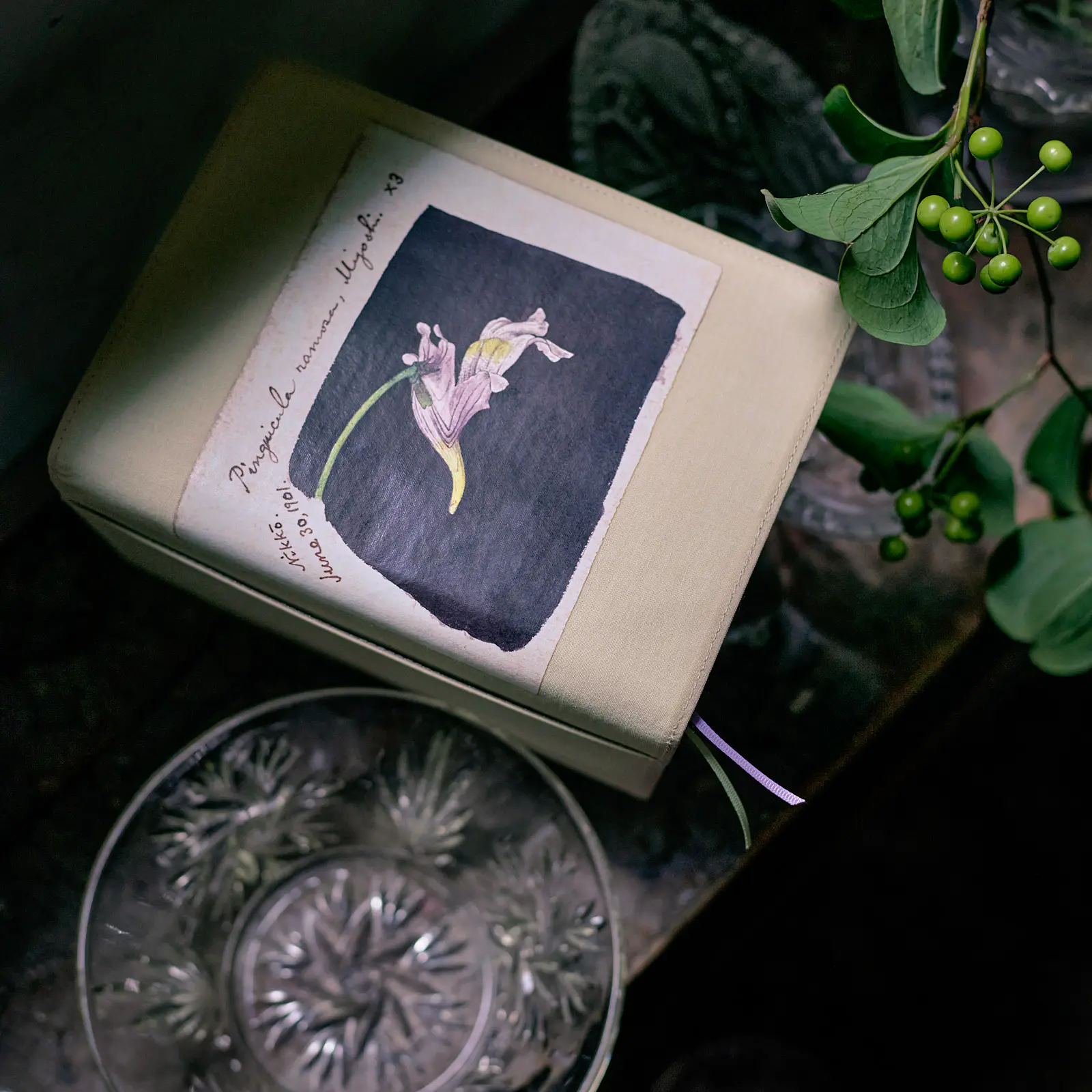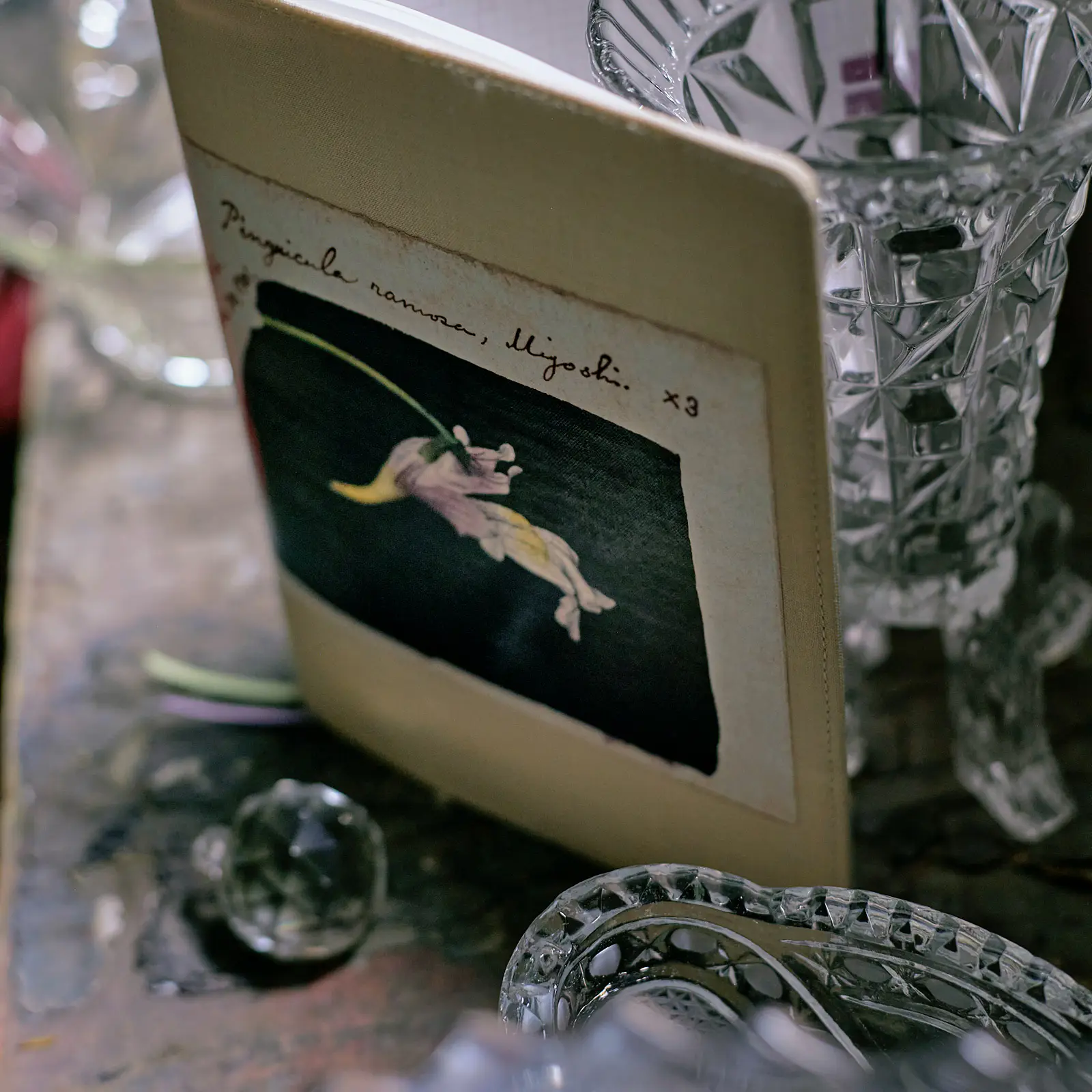 Written at the bottom of the cover interior is “Pinguicula ramosa,” the scientific name for Koshinso.