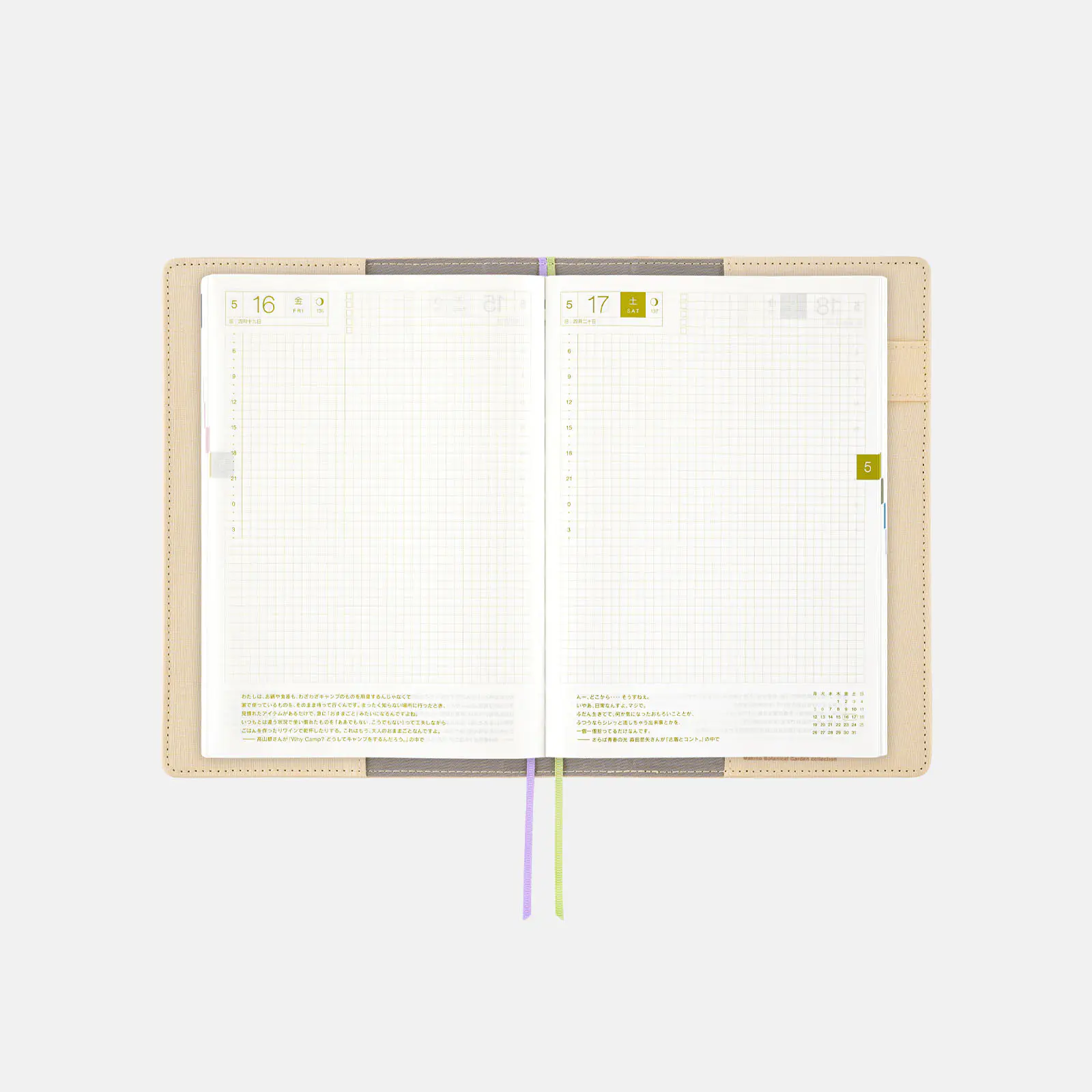 Bonus PagesTime Table / Graph Paper / Favorites / My 100 / Memories 2026 / 12 Switches to Help You Focus / For a Comfortable Night’s Sleep / Solar Terms / Emergency Preparedness / Gifts / Age Table / Conversion Chart / Getting the most of Hobonichi / Addresses / Personal Notes