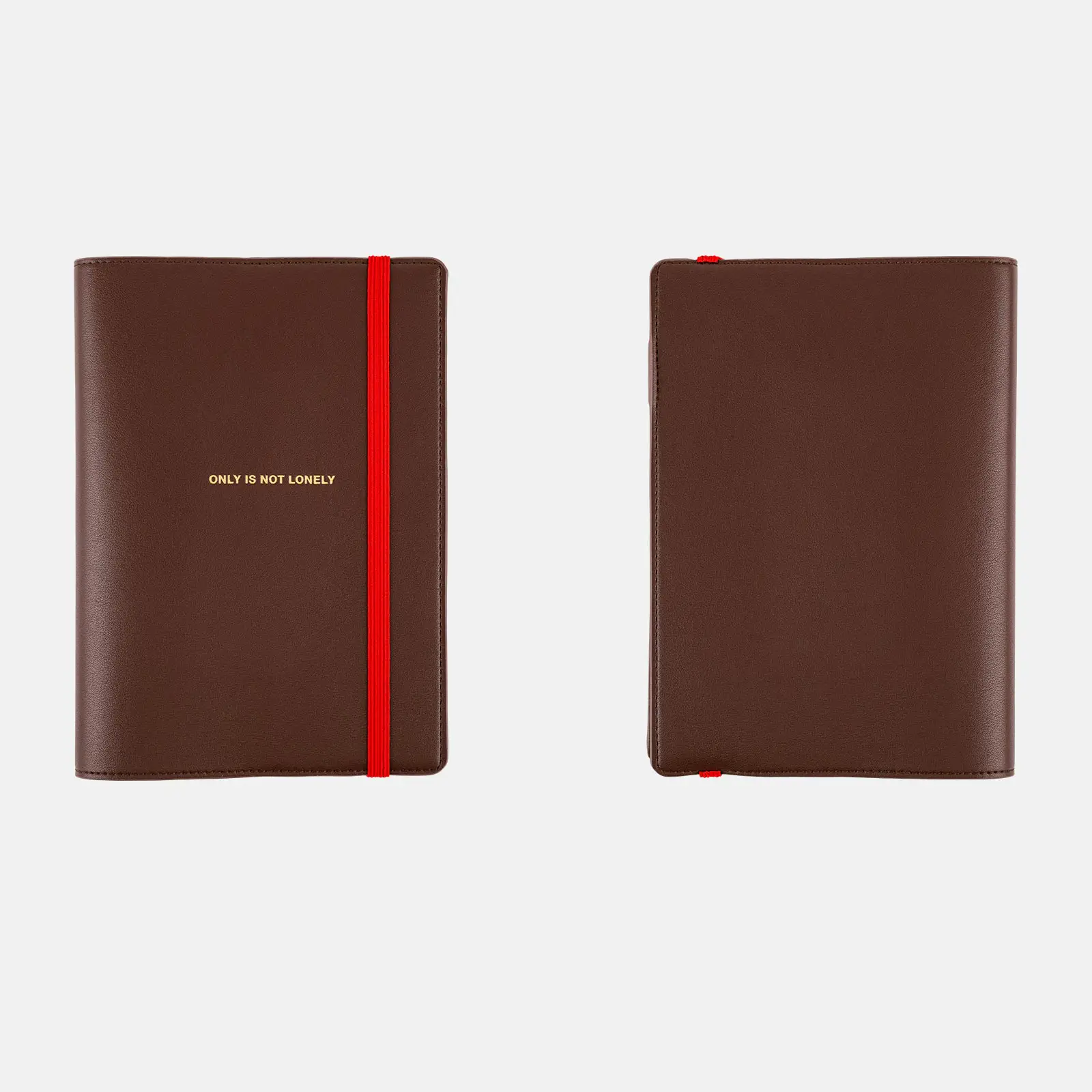 The cover is a chocolate brown for a basic look that’s easy for anyone to carry around. The message is foil-pressed in gold, and the elastic band is red to match well with the brown. The calming yet energizing color scheme is quite appealing.
