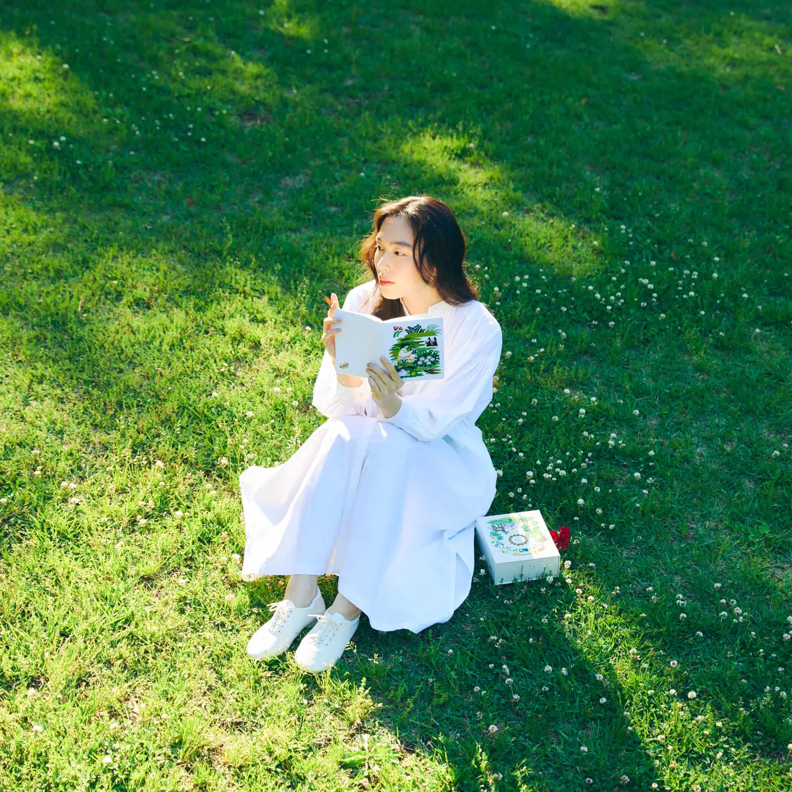 We created this box with designs by embroidery artist and illustrator iyo okumi. The cover and pencil board are all designed by okumi. The theme of this set is “haconiwa,” which means “miniature garden” in Japanese.
