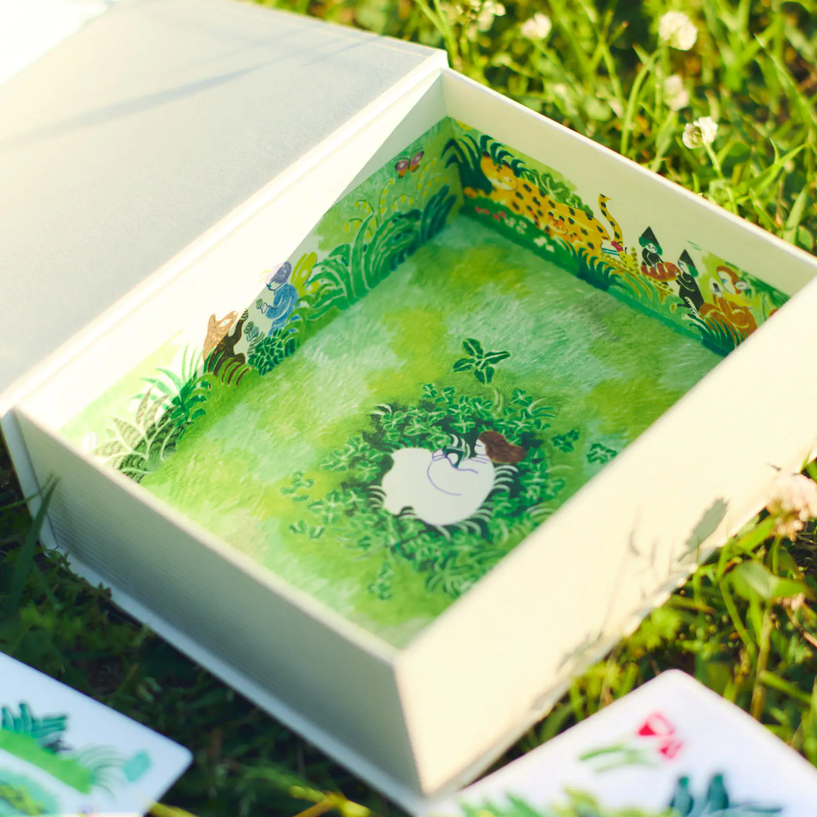 We also put a lot of thought into the box. The lid of the box depicts animals playing with lively plants. The center has the words “Your Story” foil-pressed in gold.