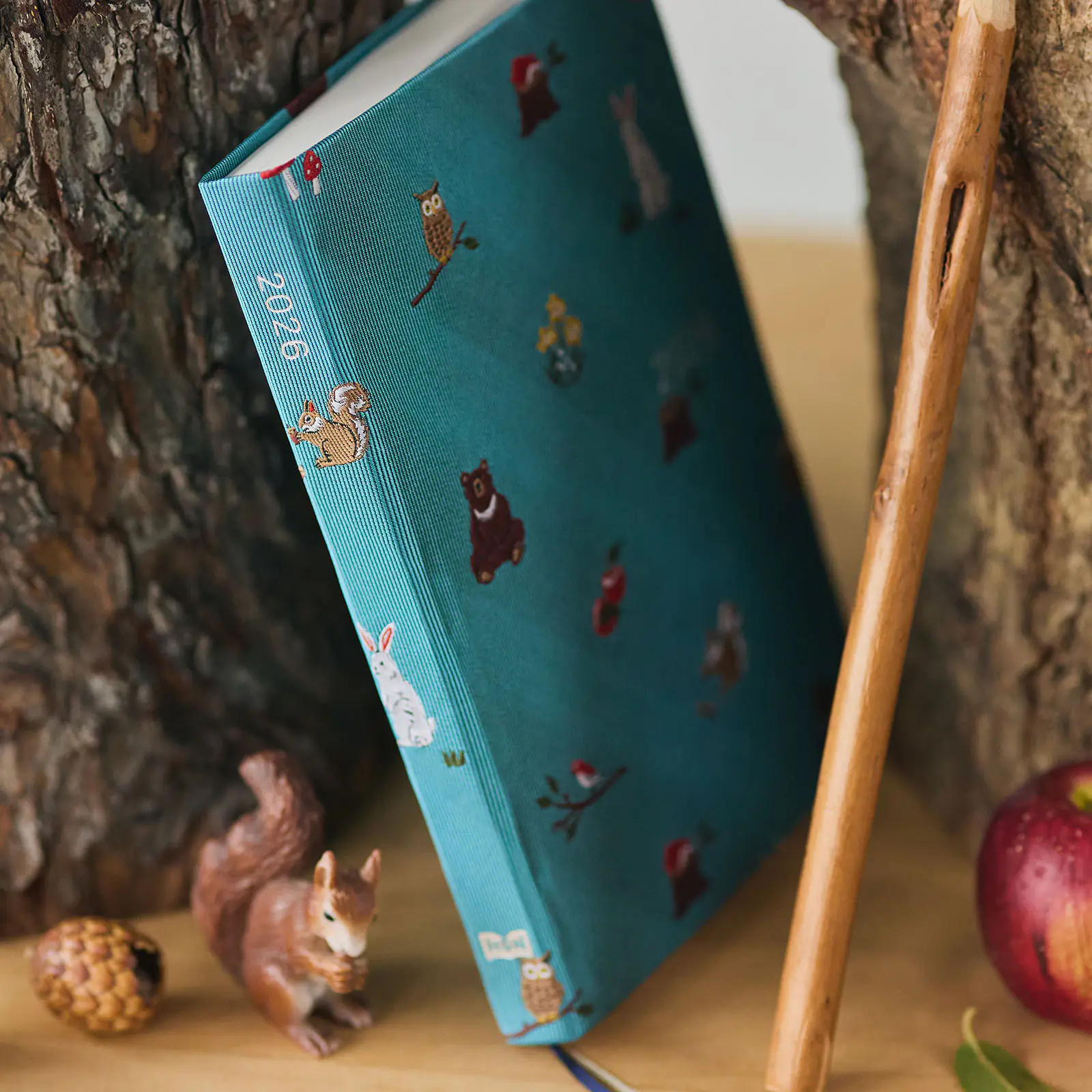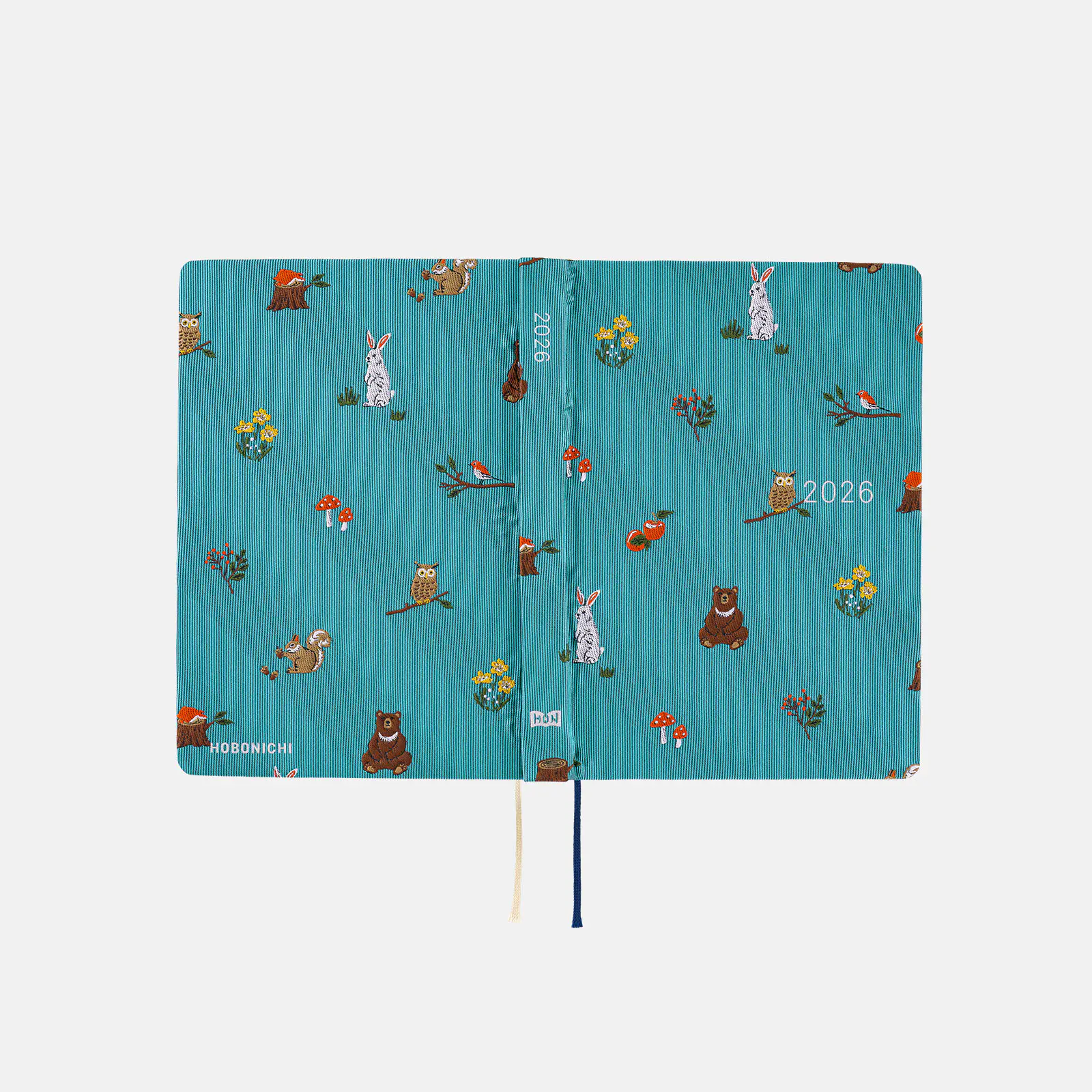 Somewhere in the design, you’ll find a Hobonichi Techo resting on a tree stump. It feels as if someone has paused to take a break in the forest, surrounded by the animals.