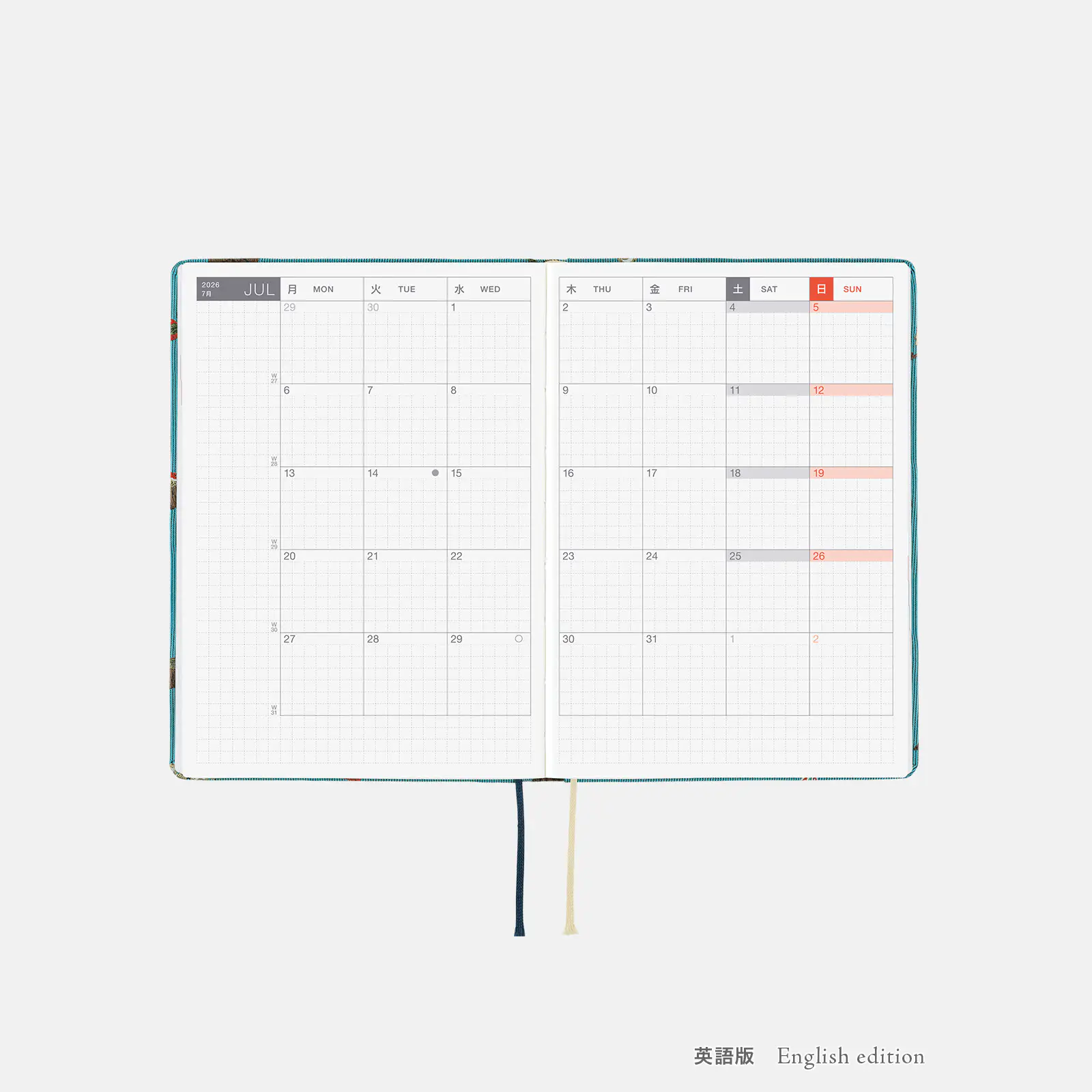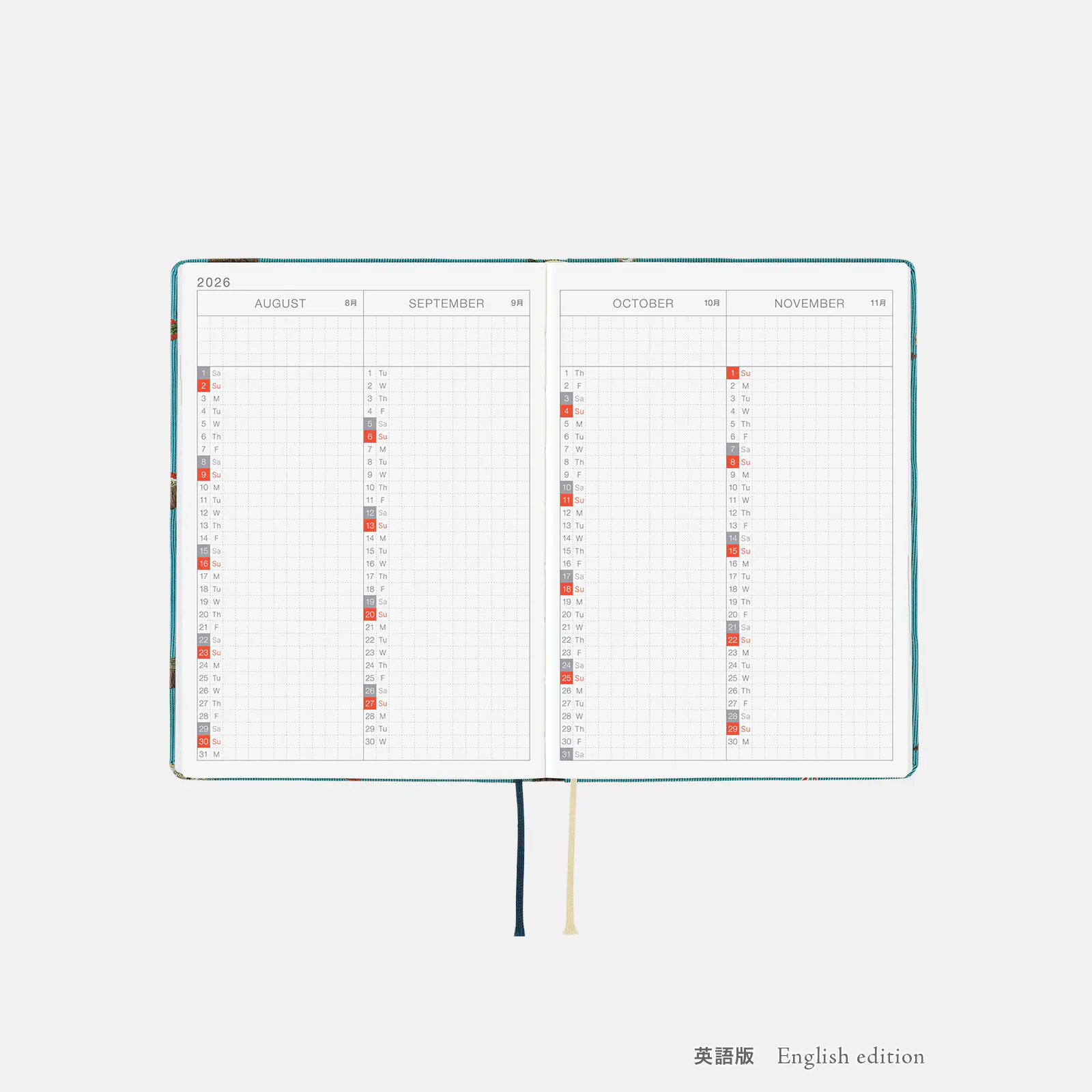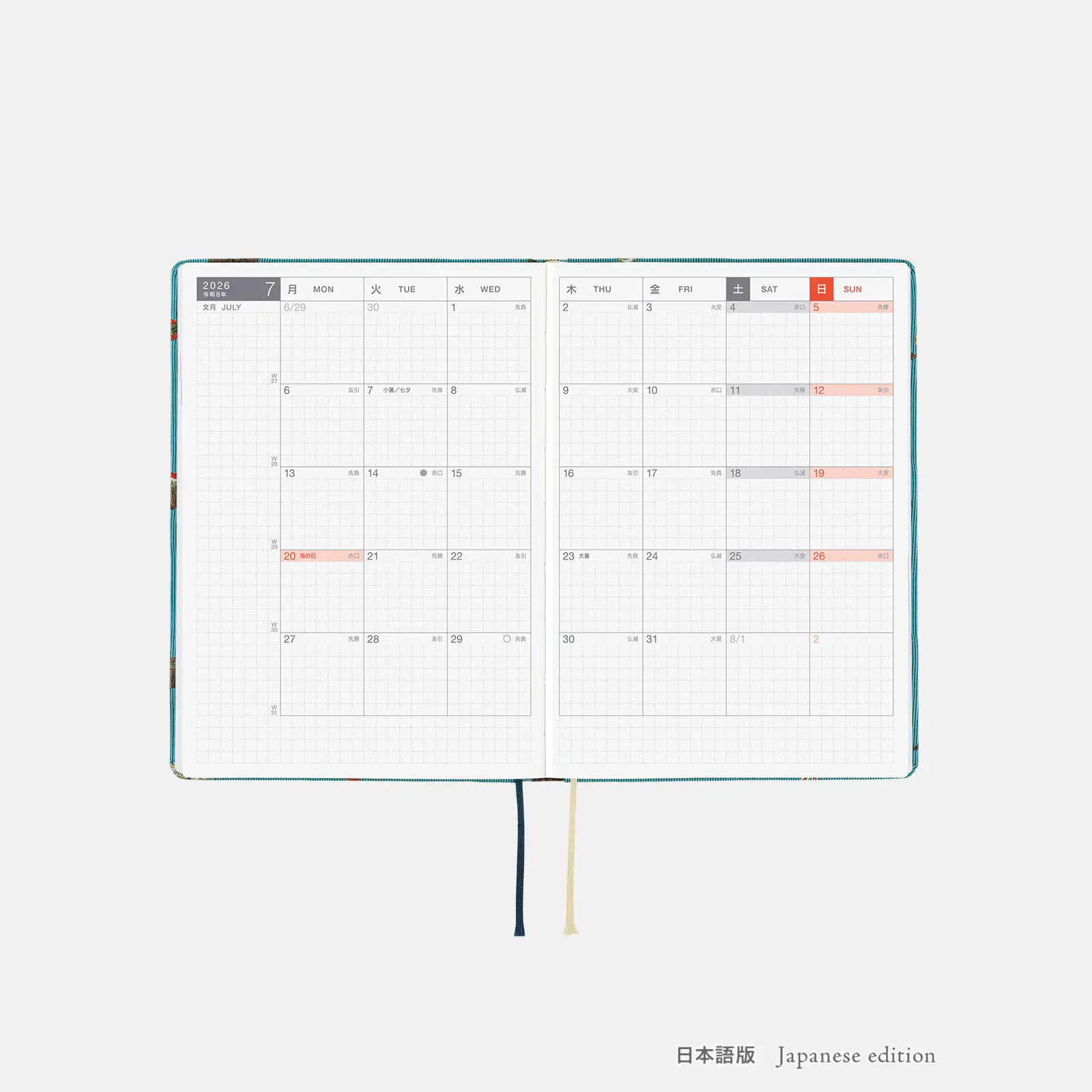 | Bonus Pages | Time Table / Graph Paper / Favorites / My 100 / Memories 2026 / 12 Switches to Help You Focus / For a Comfortable Night’s Sleep / Solar Terms / Emergency Preparedness / Conversion Chart / Getting the most of Hobonichi / Gifts / Age Table / Addresses / Personal Notes |