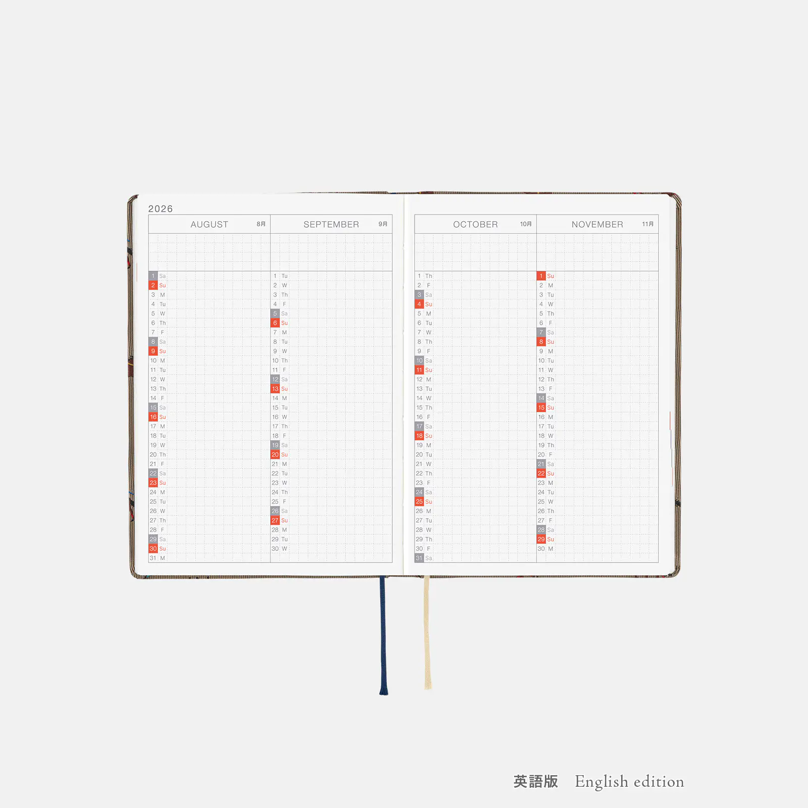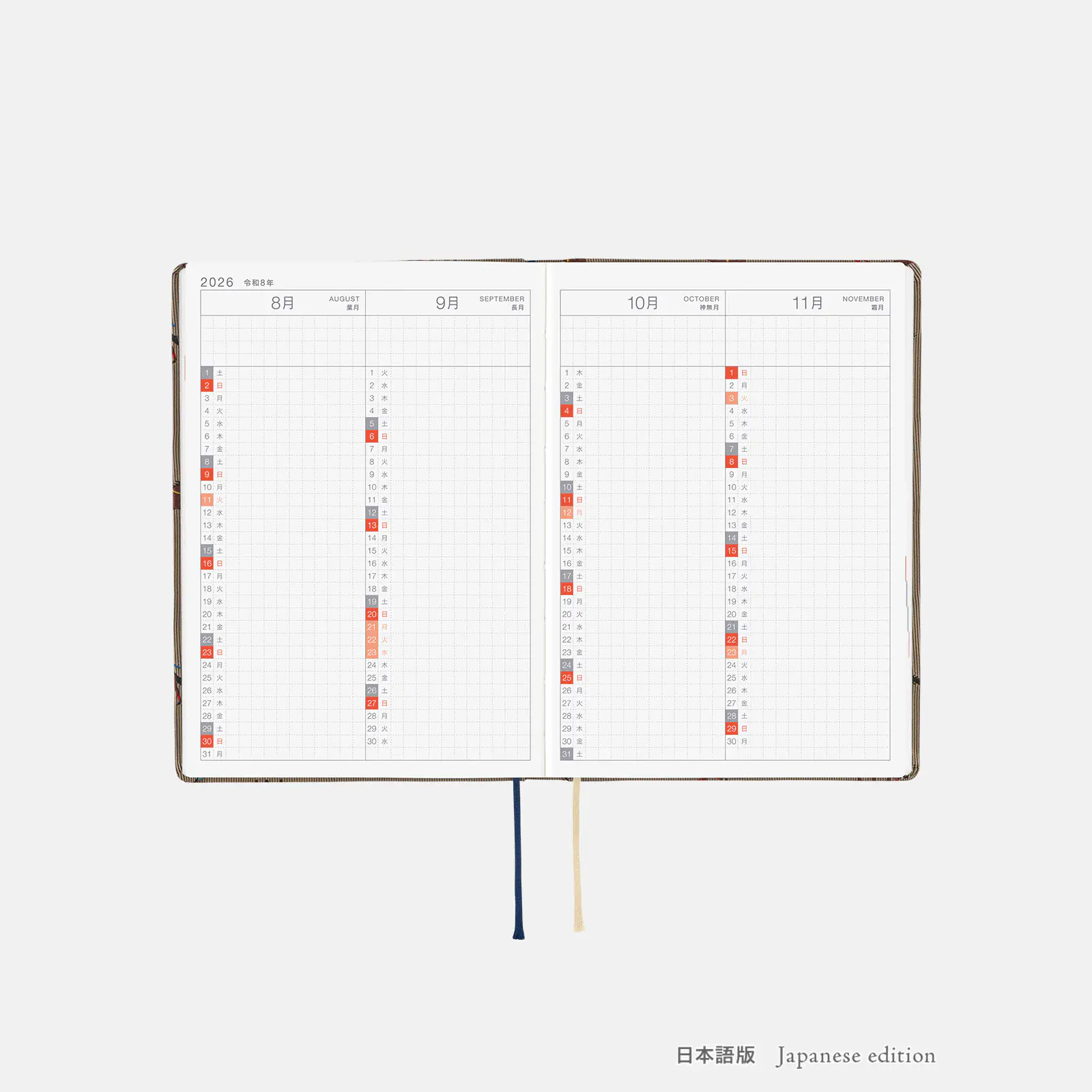 | Bonus Pages | Time Table / Graph Paper / Favorites / My 100 / Memories 2026 / 12 Switches to Help You Focus / For a Comfortable Night’s Sleep / Solar Terms / Emergency Preparedness / Conversion Chart / Getting the most of Hobonichi / Gifts / Age Table / Addresses / Personal Notes |