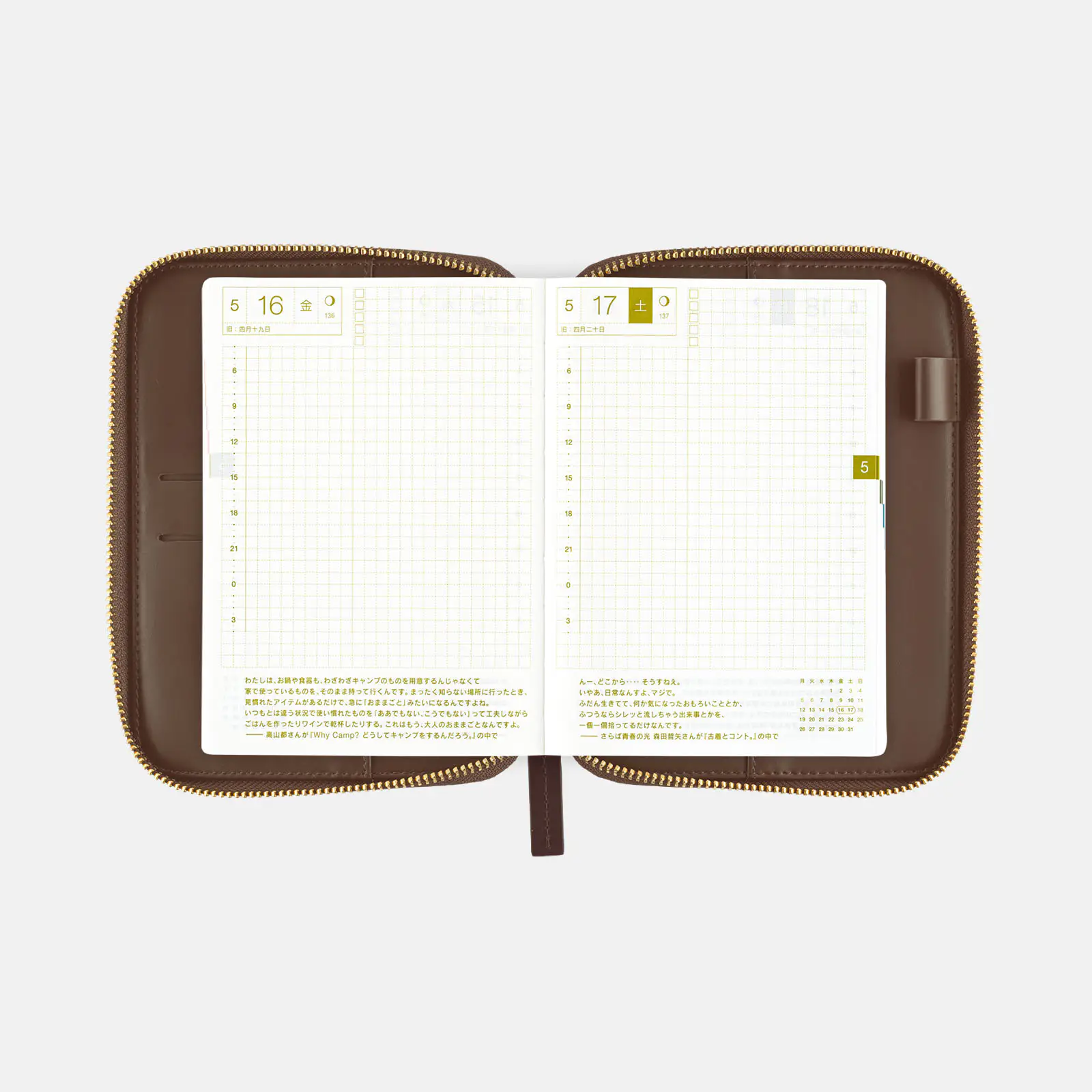 This compact A6 size techo has spacious daily pages and a simple graph-paper design that offers plenty of freedom to draw, paste, and write.