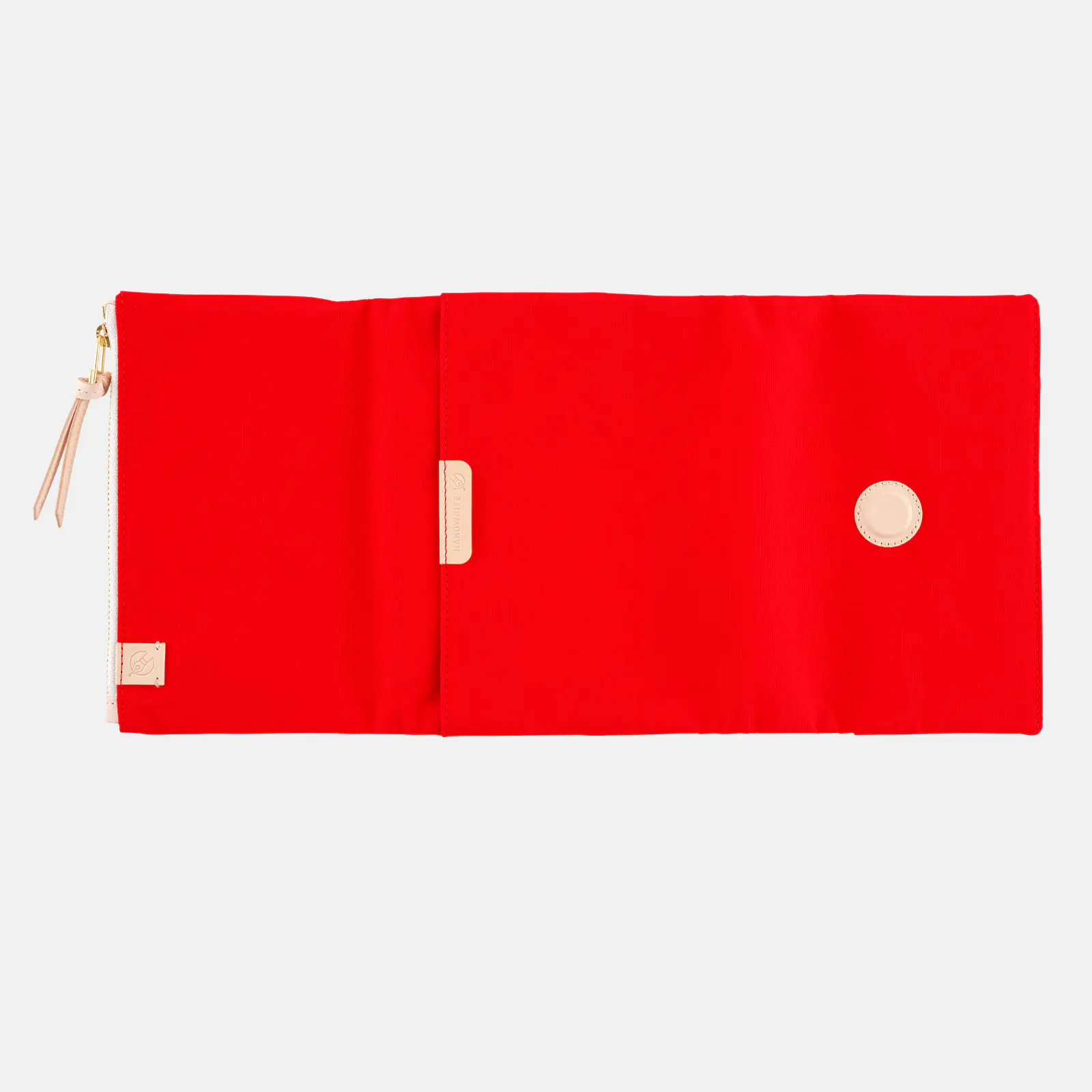 The inside of the pocket is in a light beige that matches the red of the exterior well.