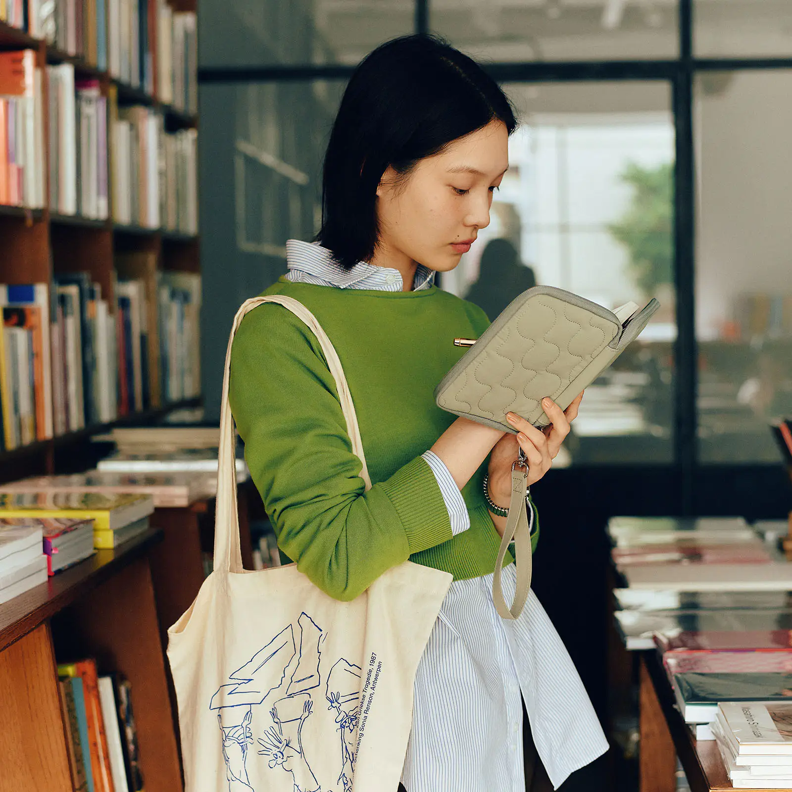 The plush, quilted texture gives it a cozy charm, and the understated design makes it easy to carry with a relaxed, effortless feel.