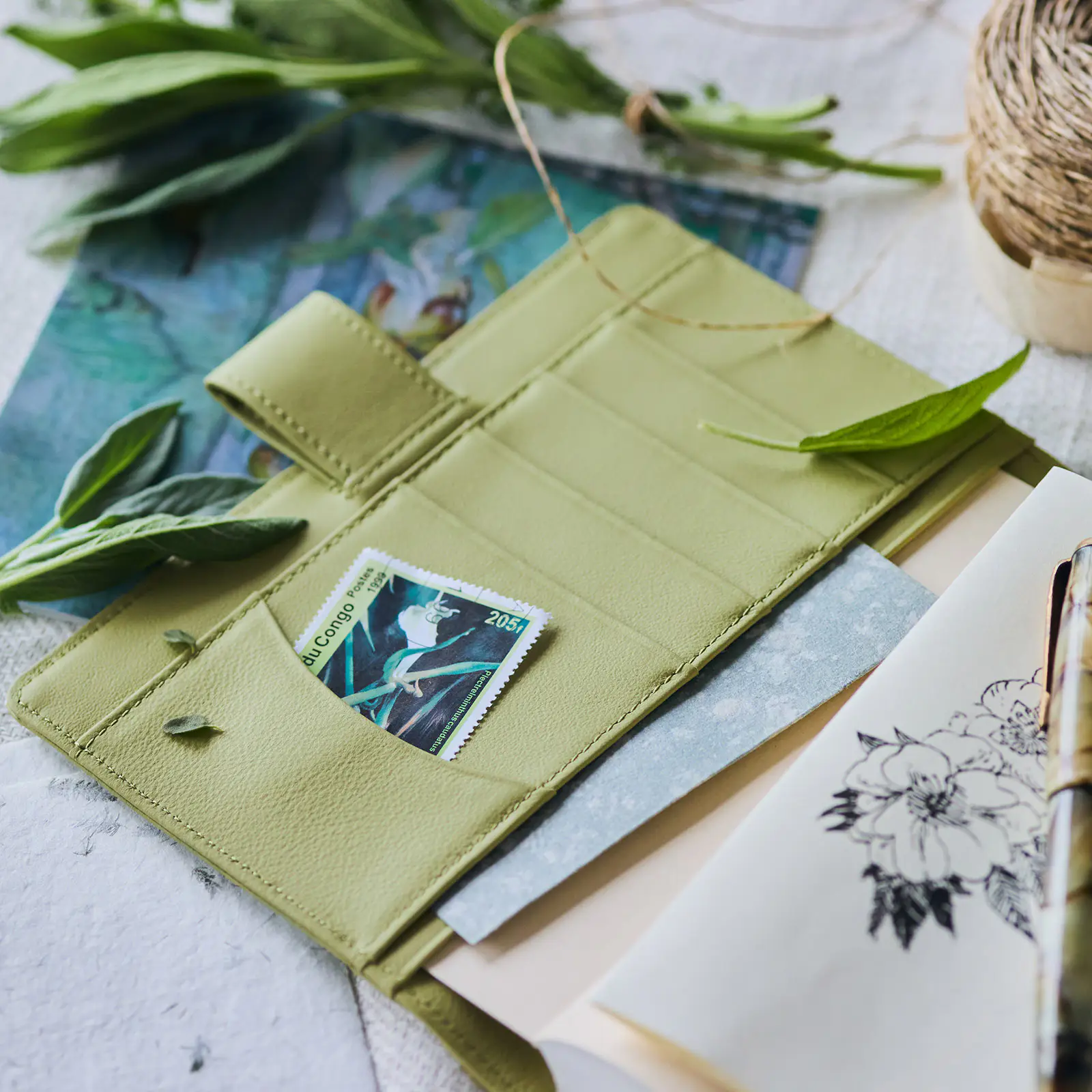 The soft feeling of the leather and the refreshing, natural shade of green all speak to the charm of this cover. It promises to bring peace and calmness each time you see and touch it, quieting your spirit as you spend your days with it.