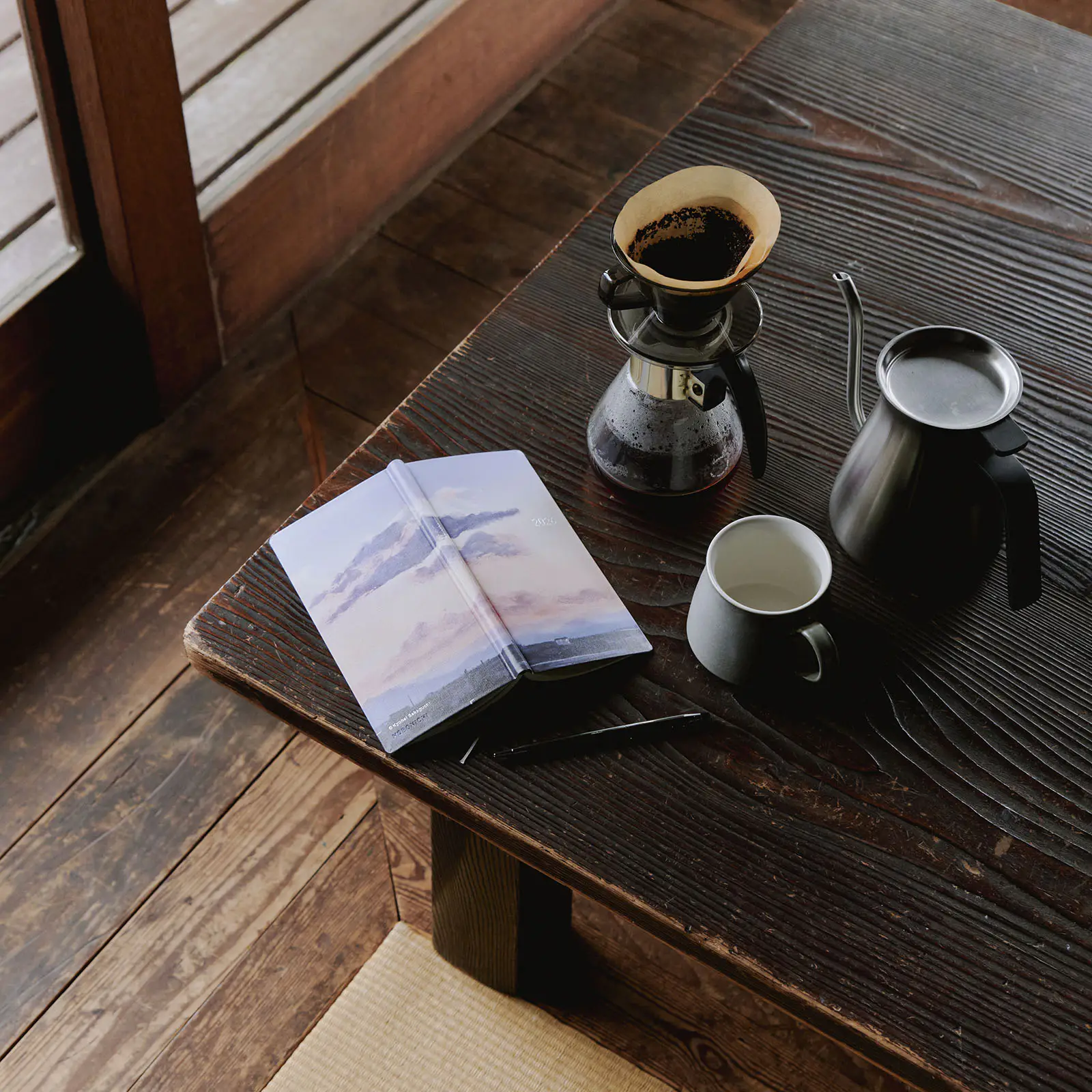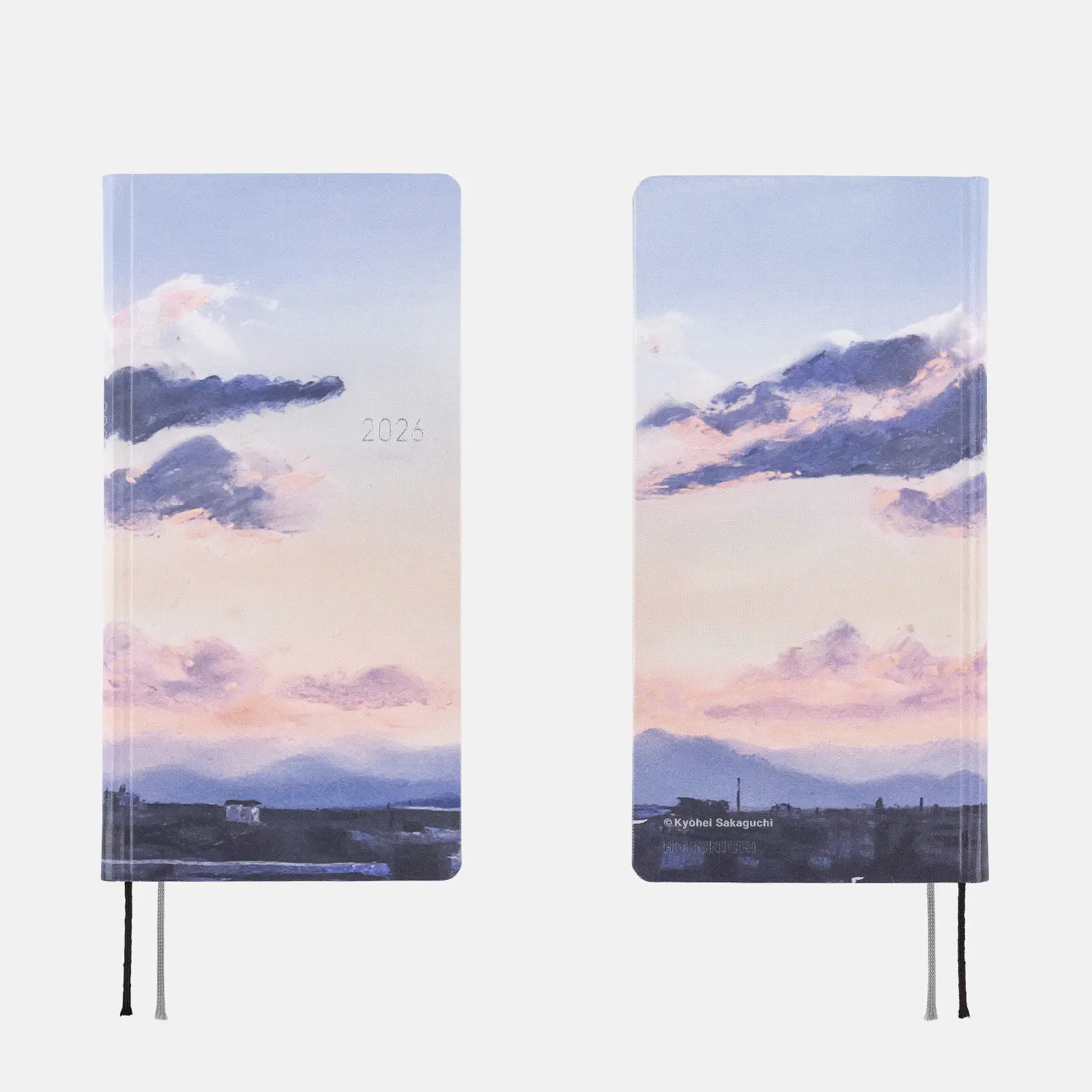There’s also a notebook titled A Notebook to Help Me Remember, featuring another pastel work by Sakaguchi. It has the same cover design as this Weeks. The horizontal A5 size includes light blue grid pages inspired by the color of the sky, printed on Tomoe River paper—the same as is used in Hobonichi Techo books.