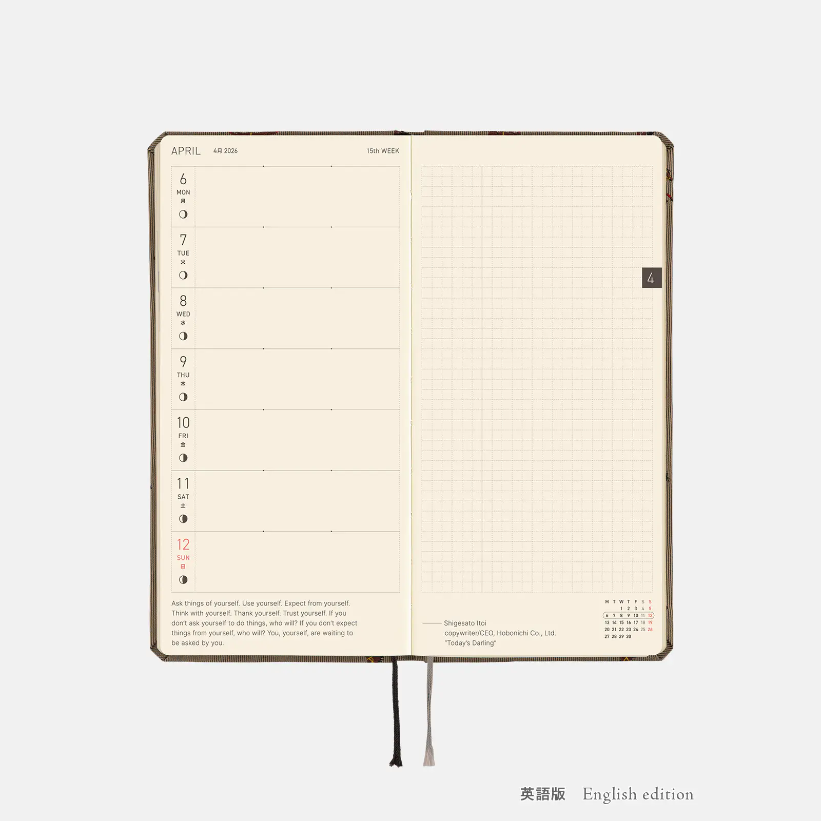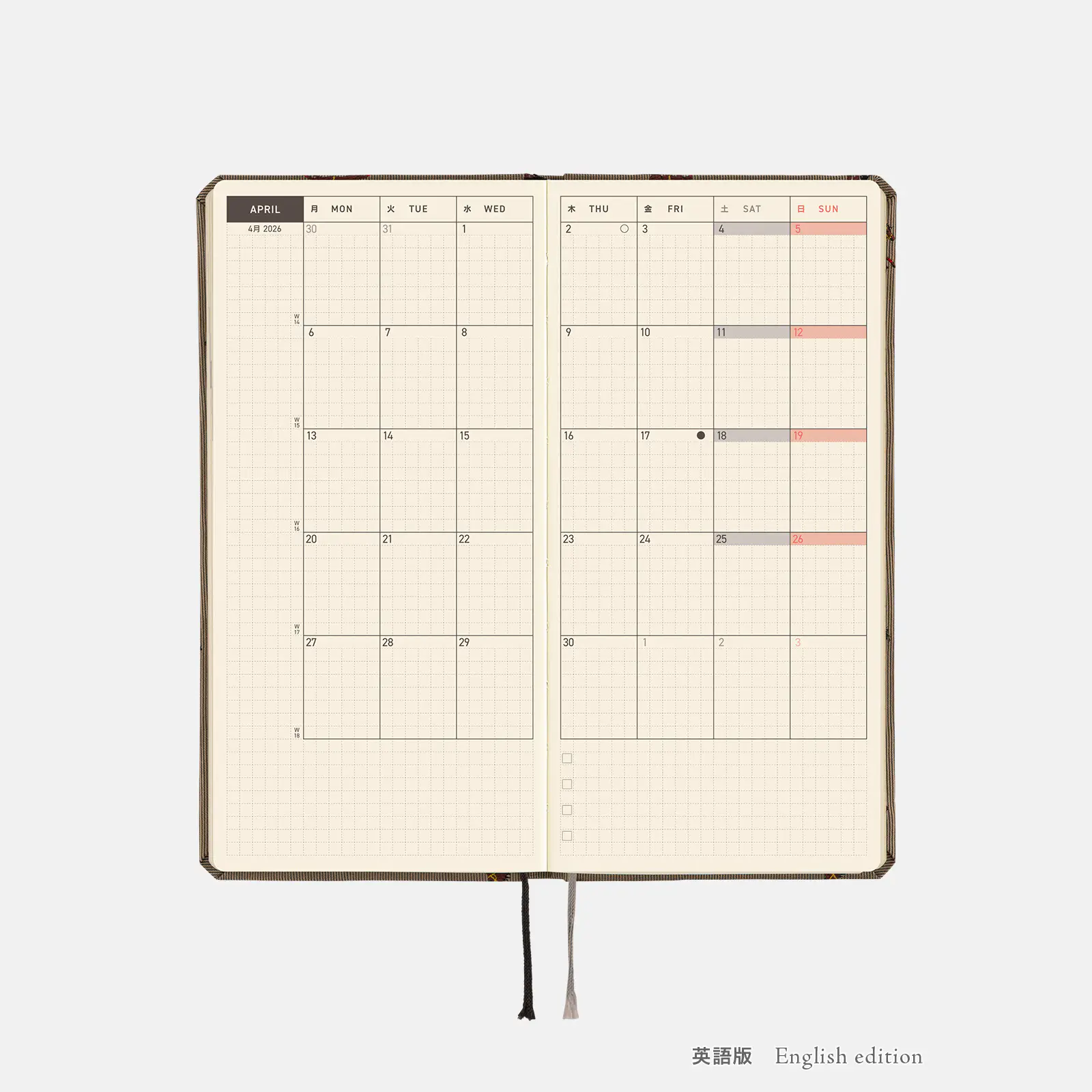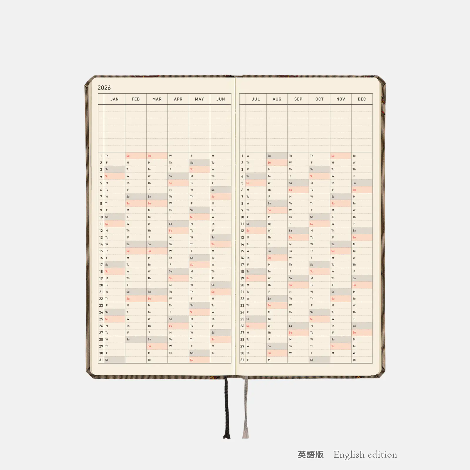 | Bonus Pages | 365 Days Check-Off Sheet / Using Things around You to Measure Size / My 100 / Memories 2026 / 12 Switches to Help You Focus / Solar Terms / Emergency Preparedness / Age Table / Conversion Chart / Getting the most of Hobonichi / Contact List / Personal Notes |