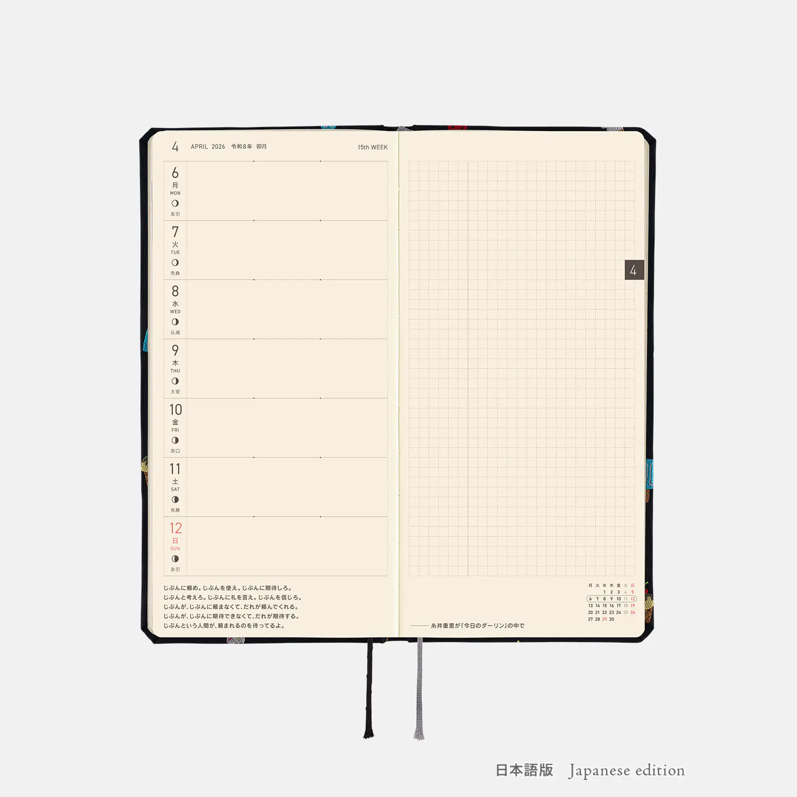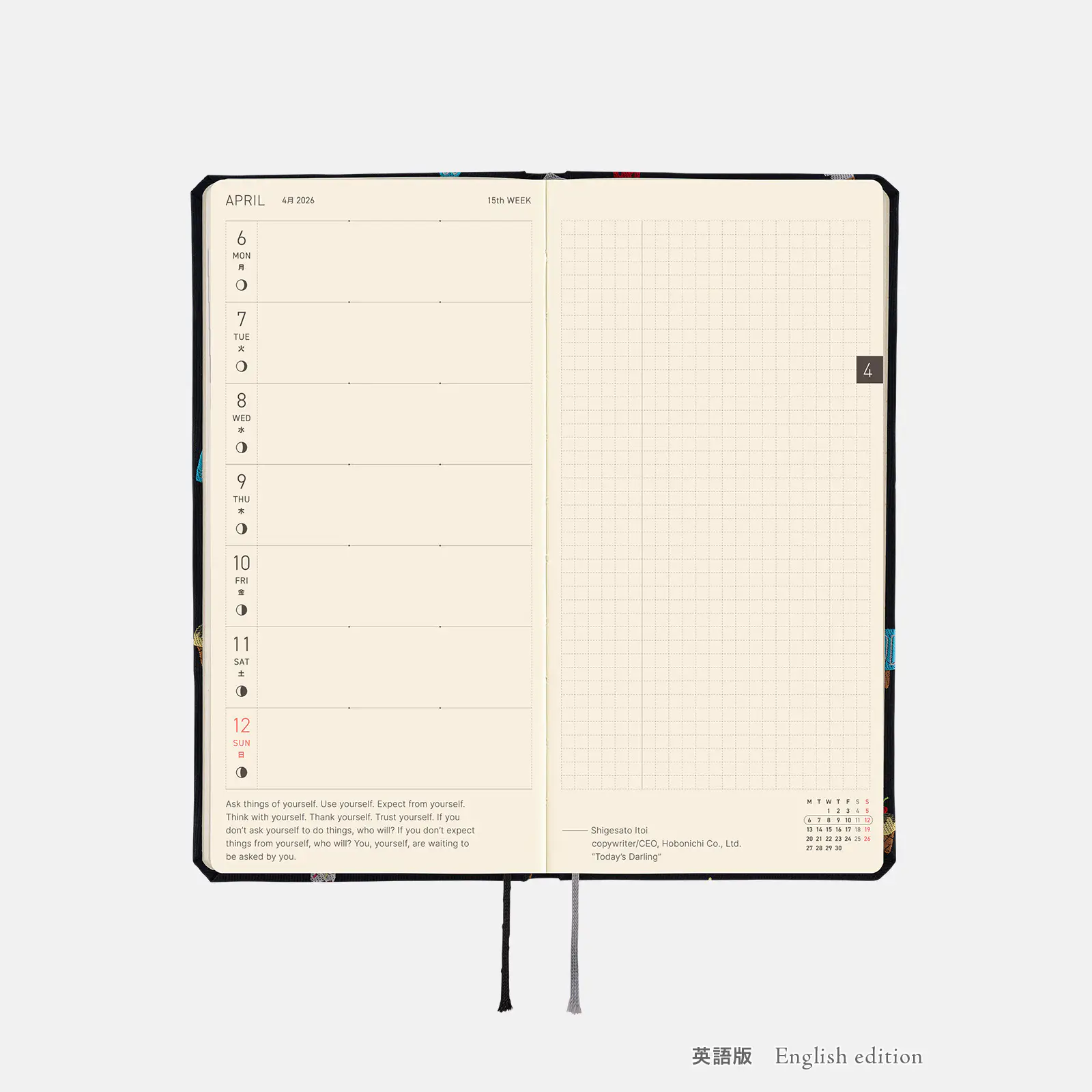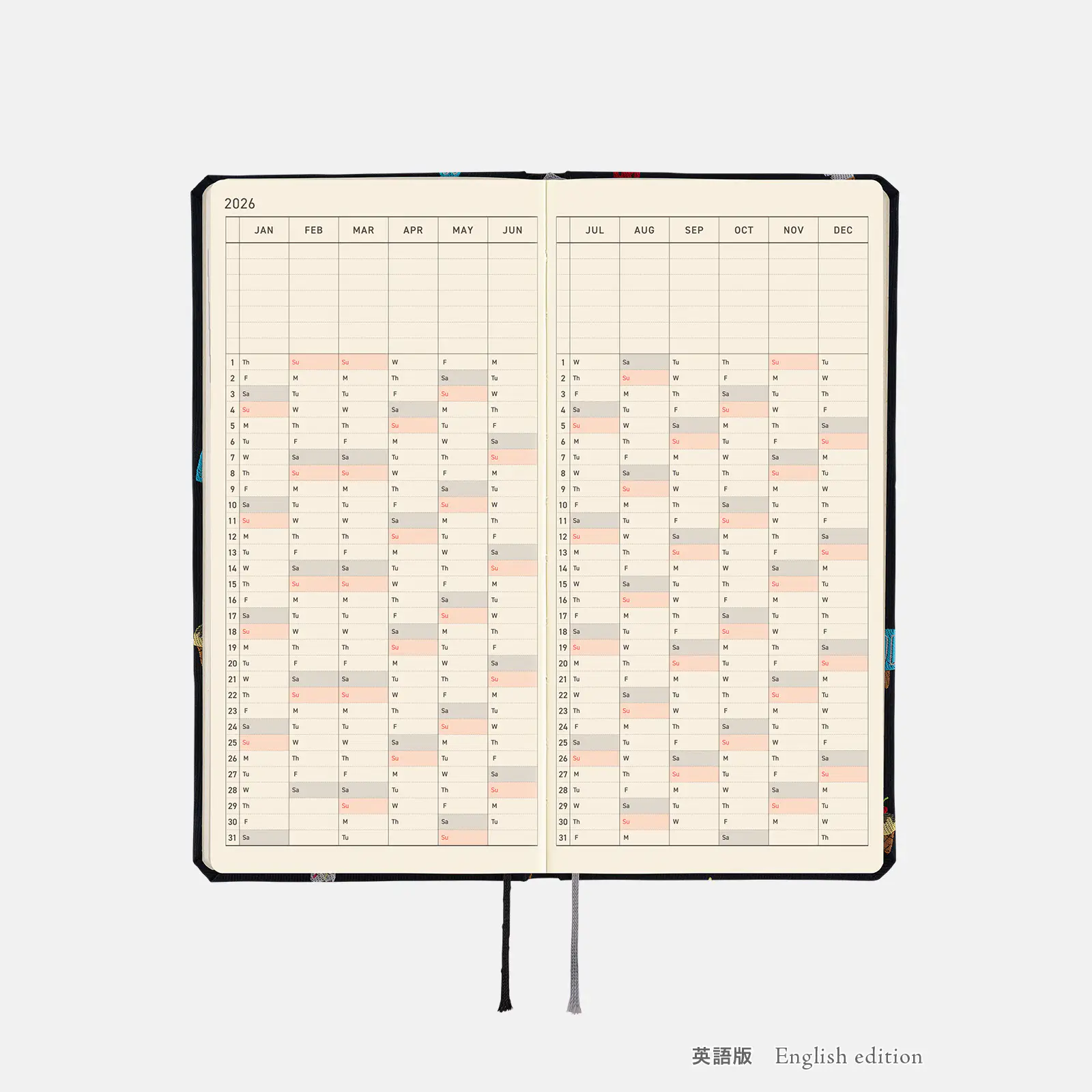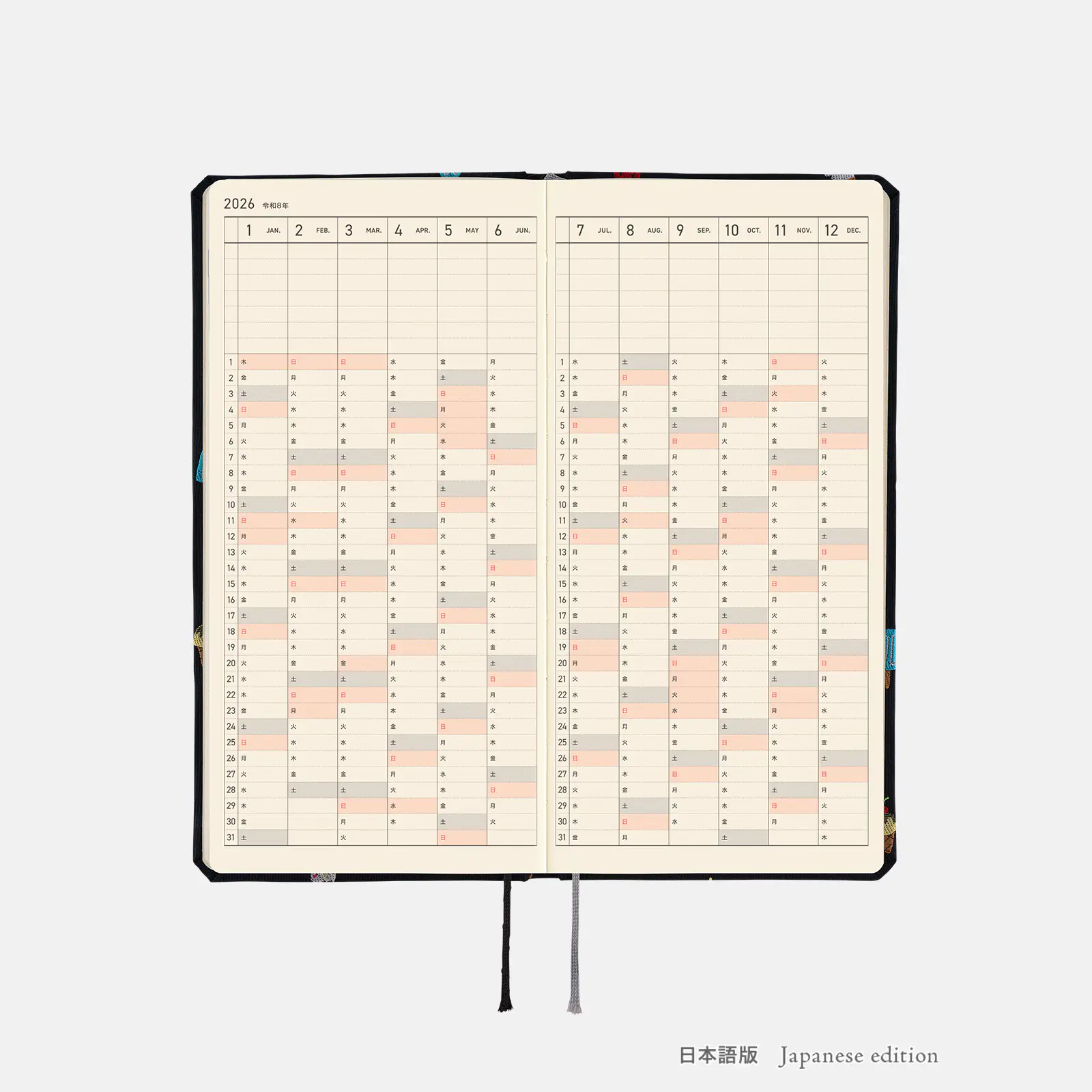 | Bonus Pages | 365 Days Check-Off Sheet / Using Things around You to Measure Size / My 100 / Memories 2026 / 12 Switches to Help You Focus / Solar Terms / Emergency Preparedness / Age Table / Conversion Chart / Getting the most of Hobonichi / Contact List / Personal Notes |