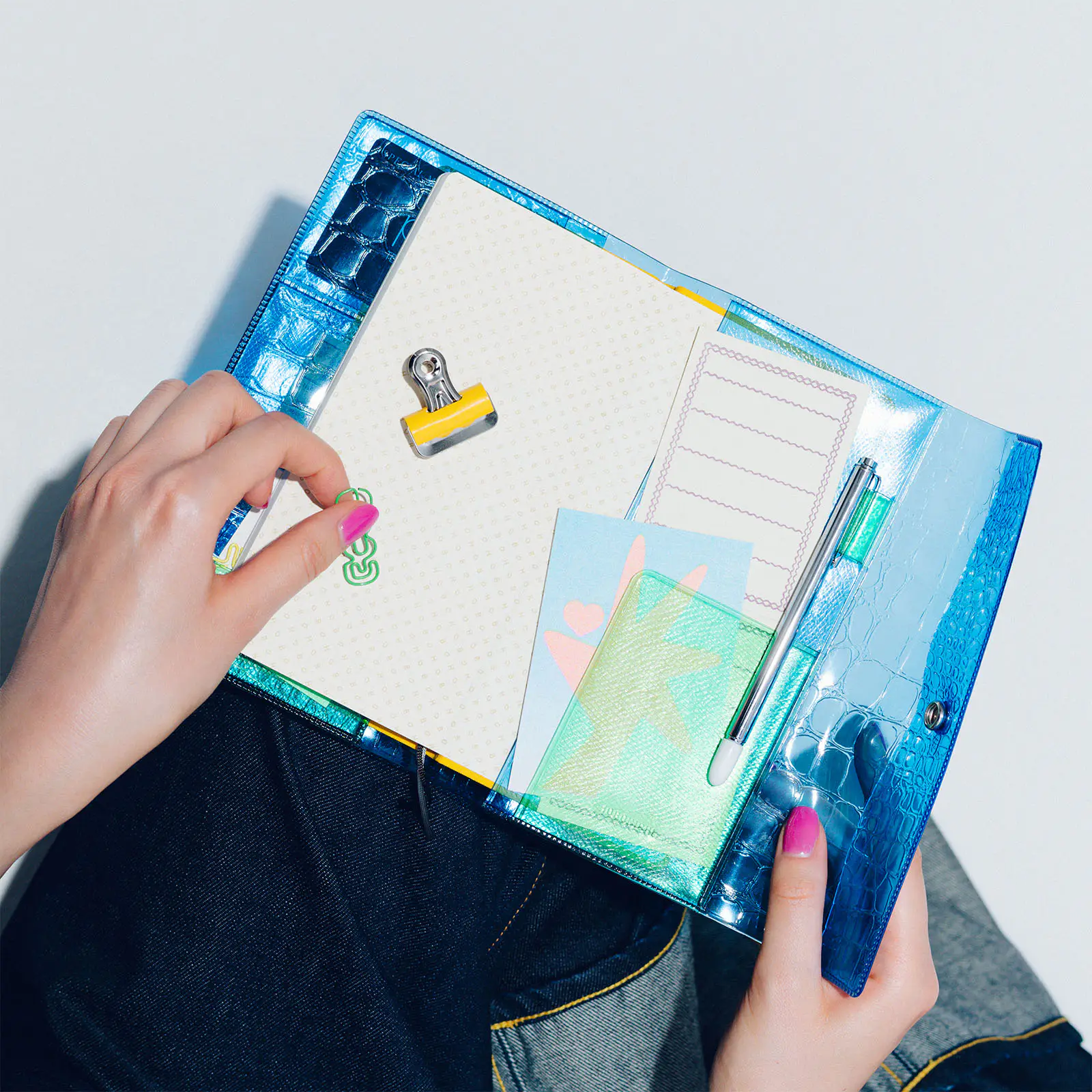 The inside offers plenty of storage. There are card pockets for business cards and other small items, as well as pockets that are perfect for storing sticky notes and other stationery. You can also enjoy displaying your favorite items as part of a visible storage style.