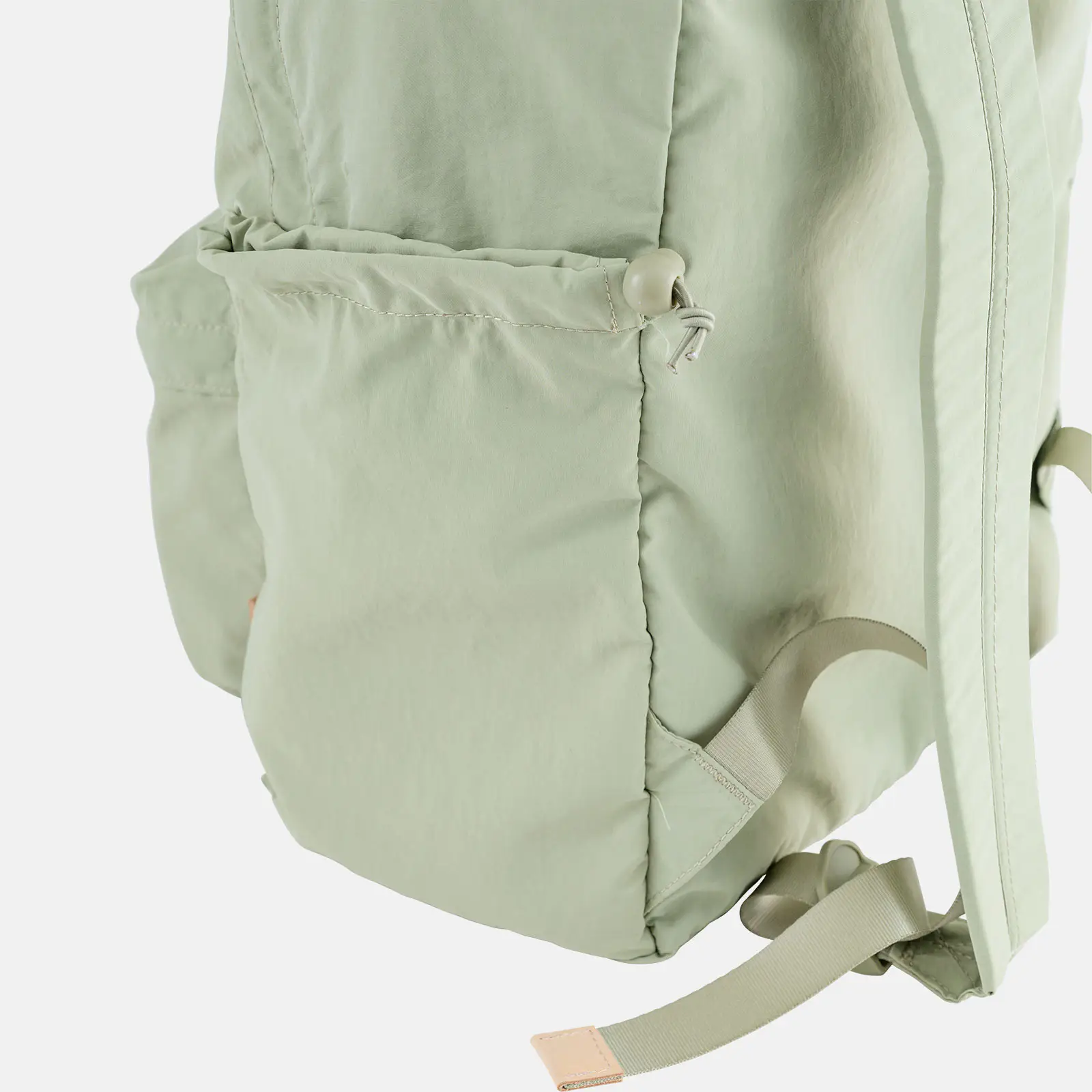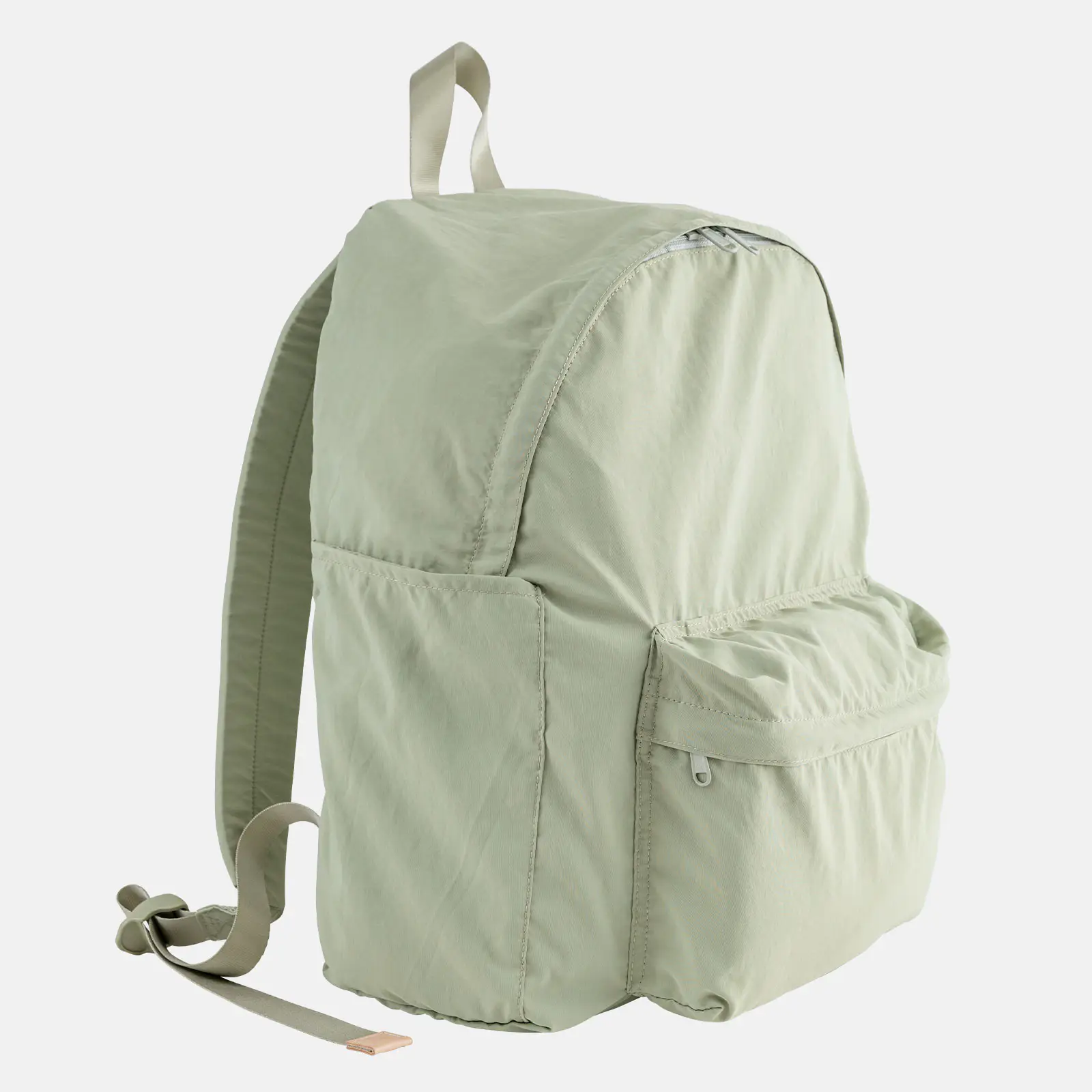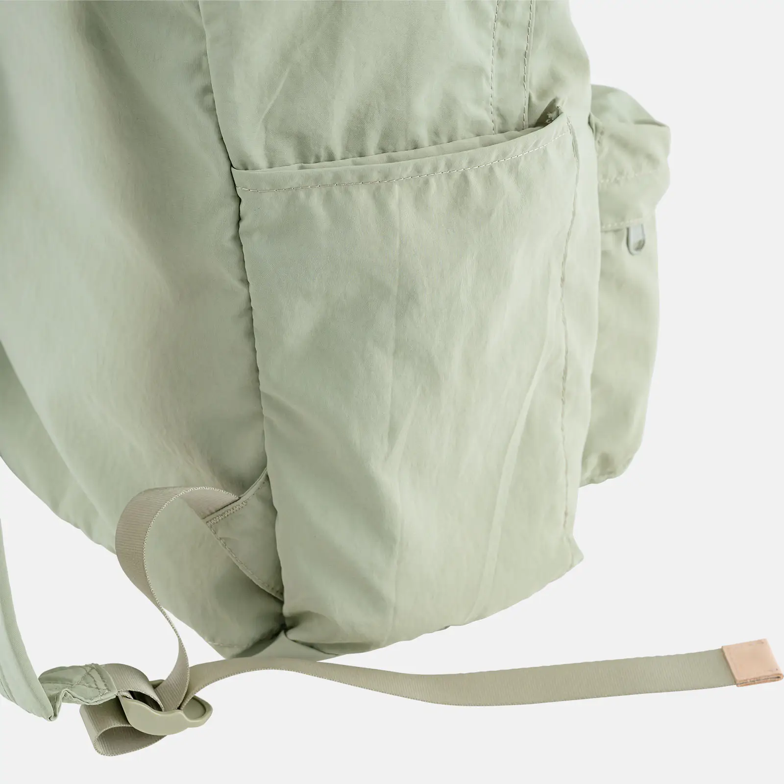 The backpack is lightweight at 300g (10.5oz). It’s made with a durable nylon material that works great as a sub-backpack you can carry around on trips or when shopping.