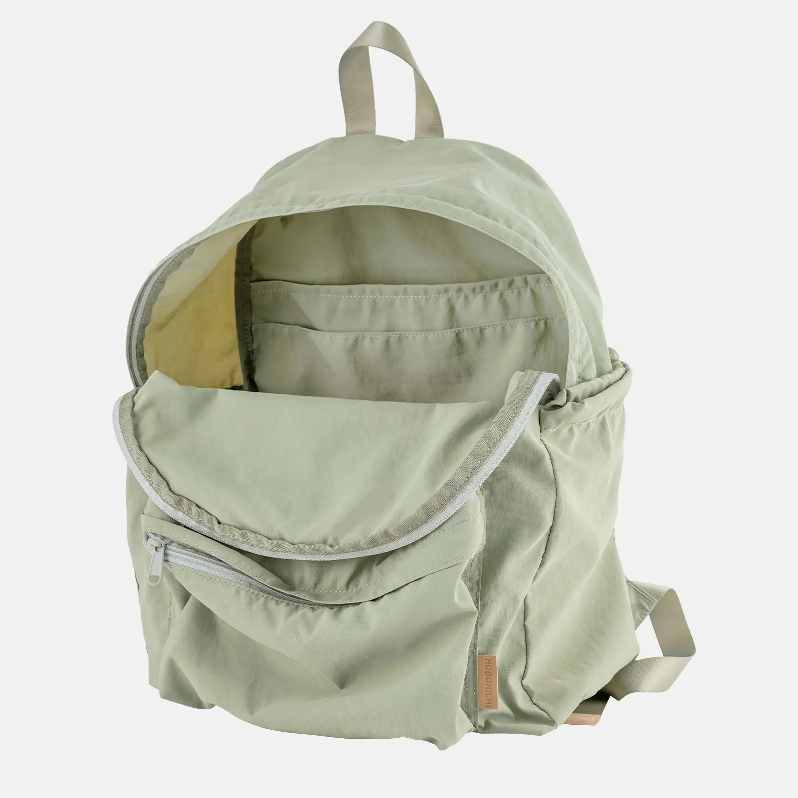 There are two layers to the backpack’s inner pockets. The back compartment fits a 13" laptop, while the front pocket is slightly shallower, making it perfect for storing items like the Drawer Pouch Áne.