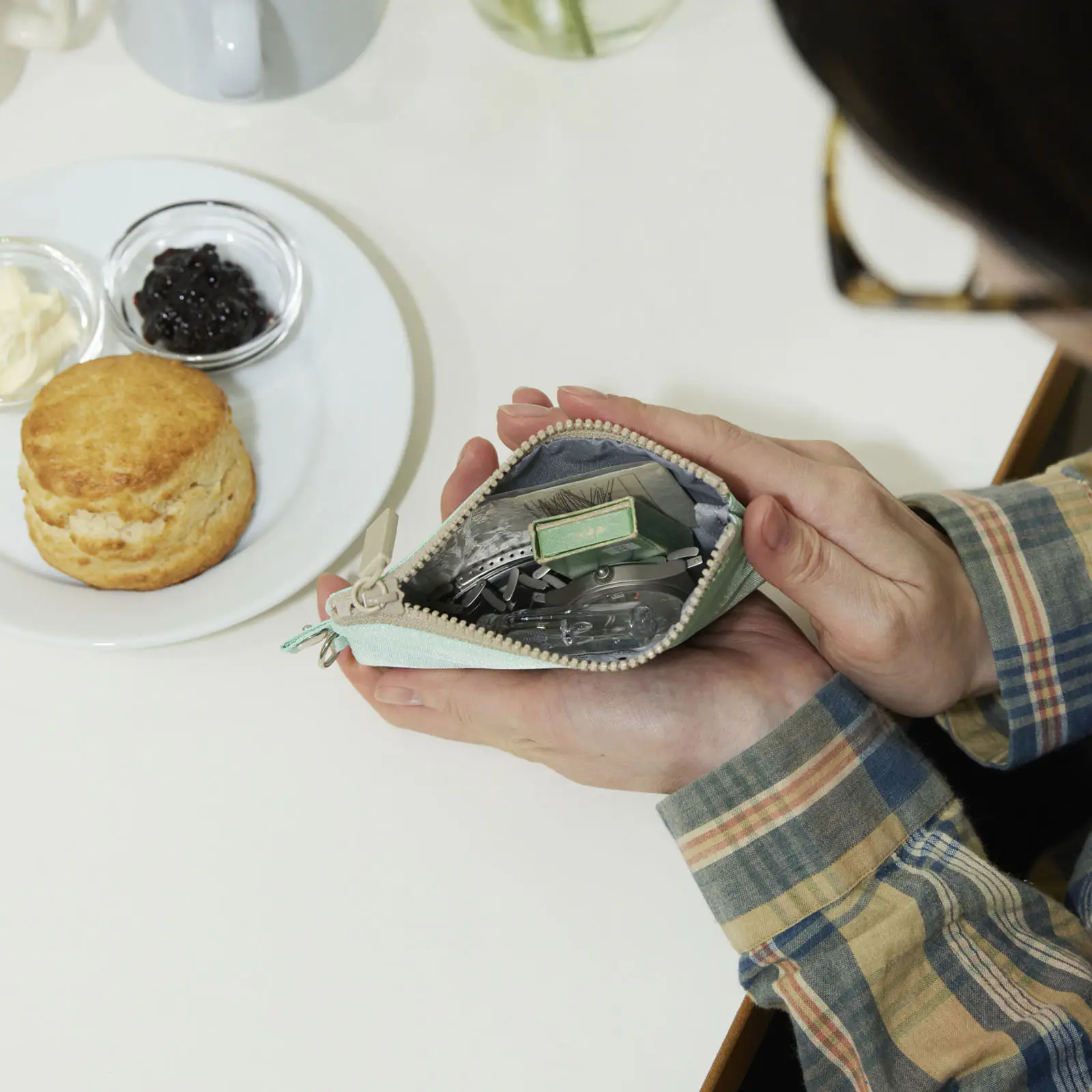 “Drawer Pouch of a 〇〇” is a series of pouches we created by teaming up with people in various industries to observe their own actual drawers and then create a Drawer Pouch from scratch by deciding the size, shape, and materials.