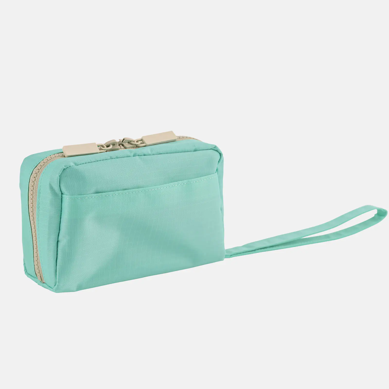 The “Box” type comes in two colorways: Stripes or Mint. Mint features a plain mint green material on the front and back, a beige zipper, and a gray interior.