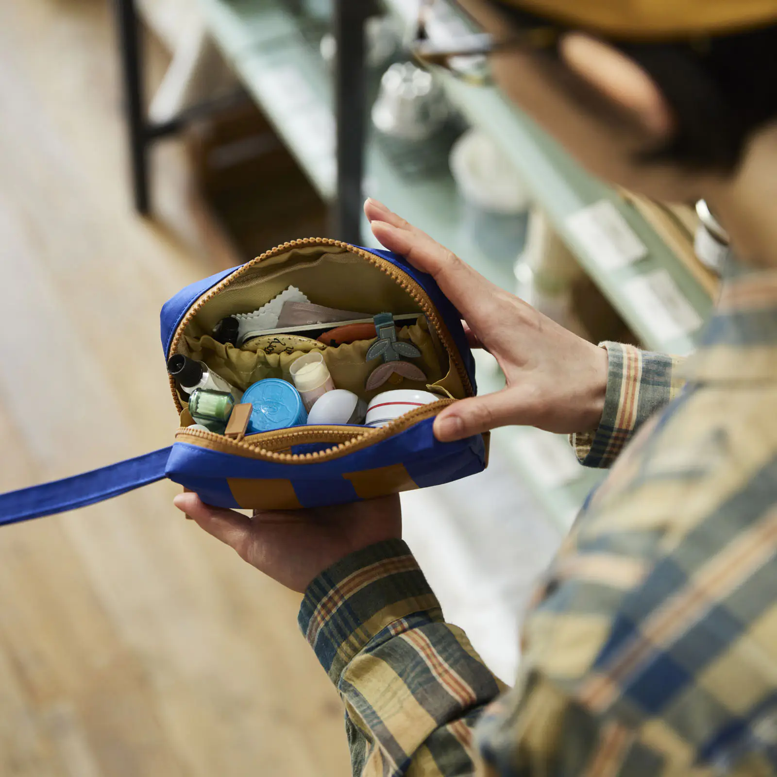We collaborated with creative design group Bob Foundation to create the “Hoppin' Pouch,” which is designed to conveniently store and carry essential items for travel. It comes in two types: “Flat” and “Box,” both containing a mini pouch inside them.