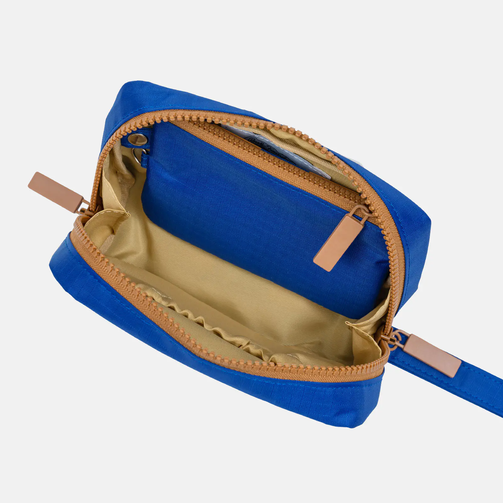 The double zipper allows the pouch to open completely to accommodate the generous space. Excluding any dividers in the pouch was a conscious decision, to keep a structure that can fit bulky items.
