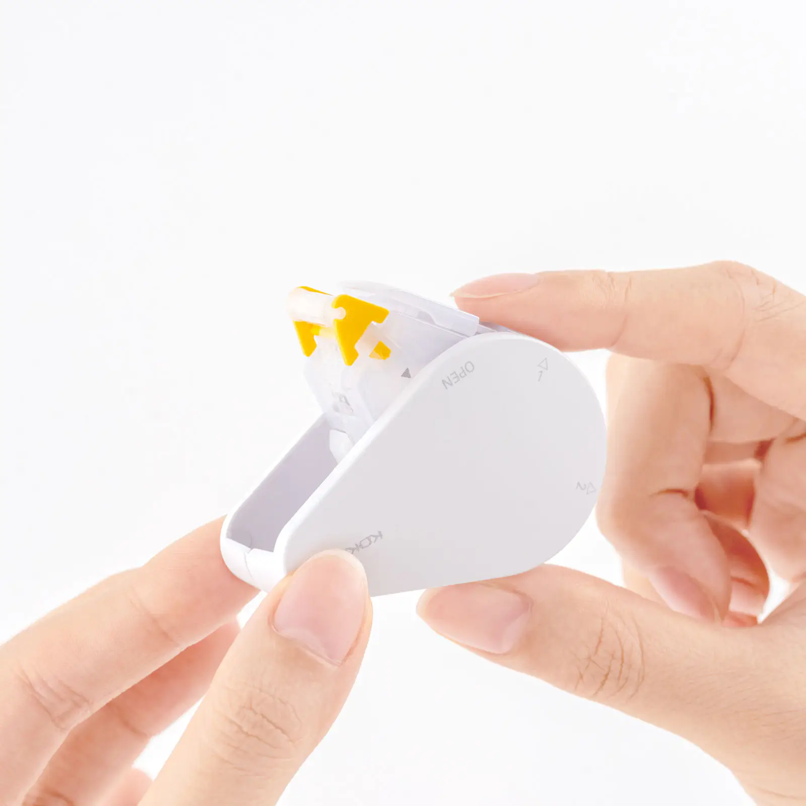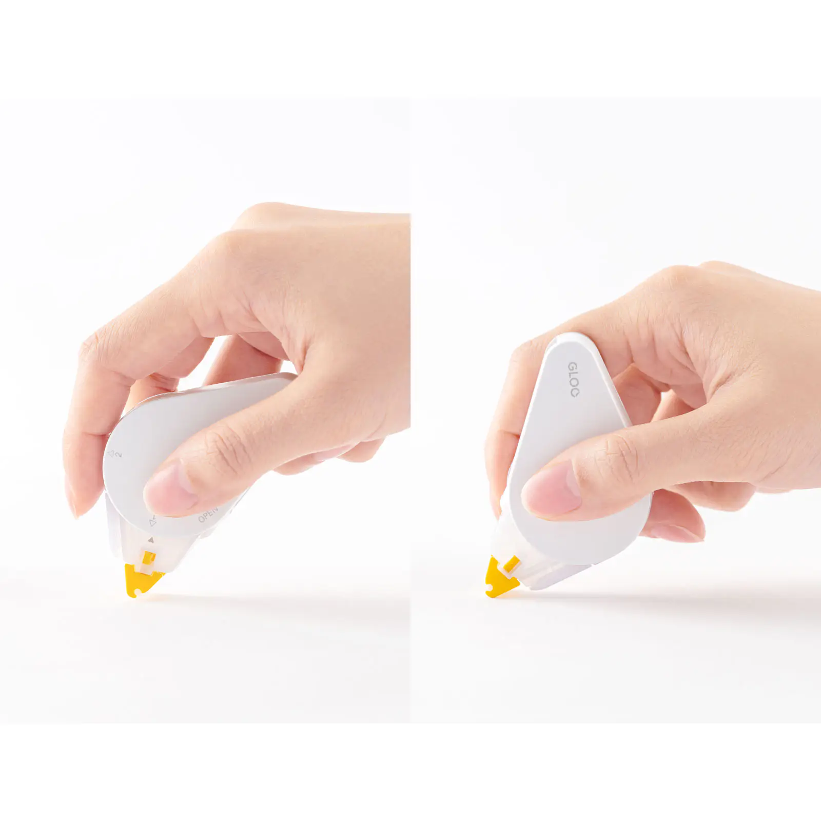 Another key feature of this adhesive tape is that you can hold it 2-ways. Since the head can be fixed at two angles, you can smoothly lay down the glue either by pressing down with your index finger or by gripping the tape in your hand.