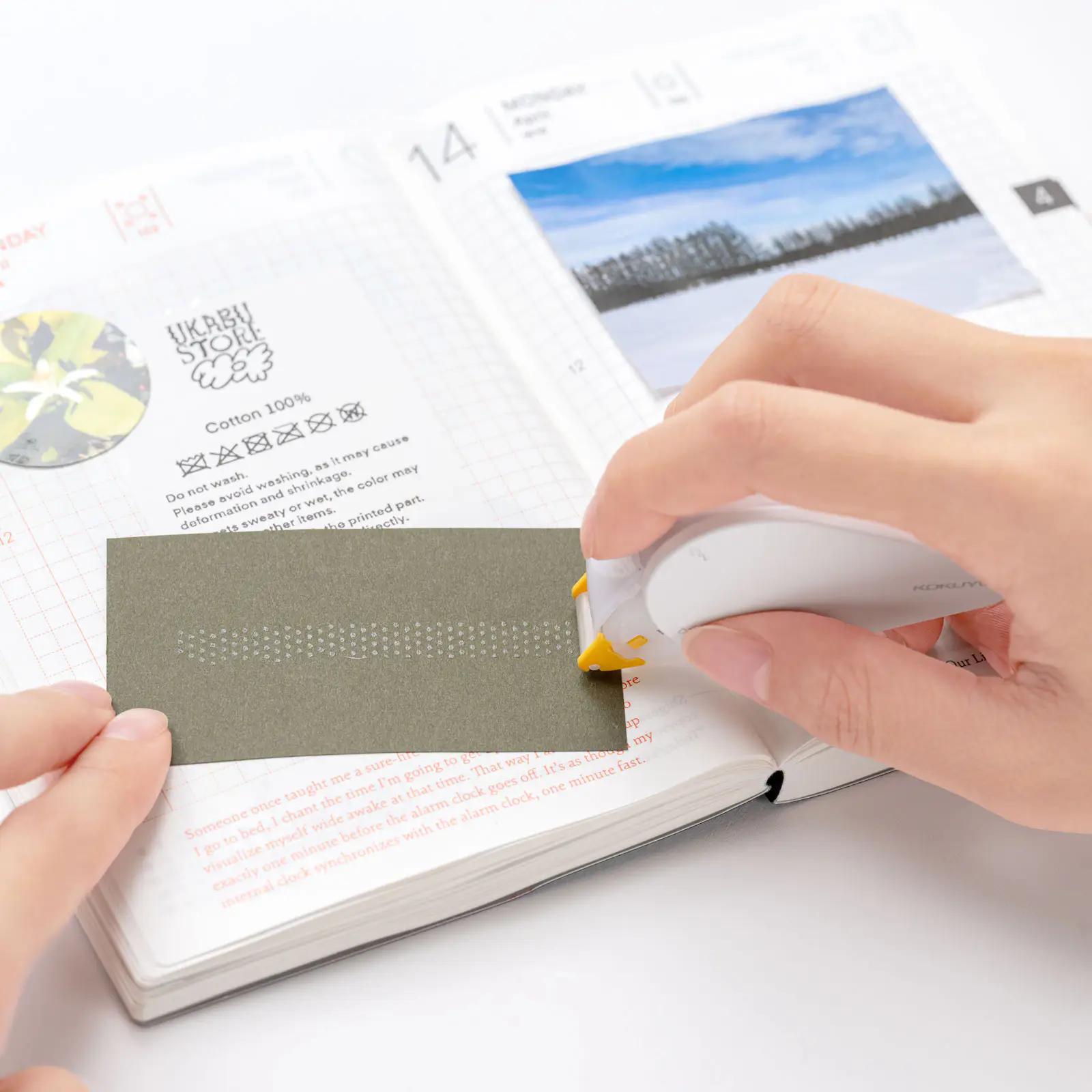 Other than using it in your techo, you can also seal envelopes and temporarily stick memos or scrap paper to a surfaceーjust stick and peel off again.