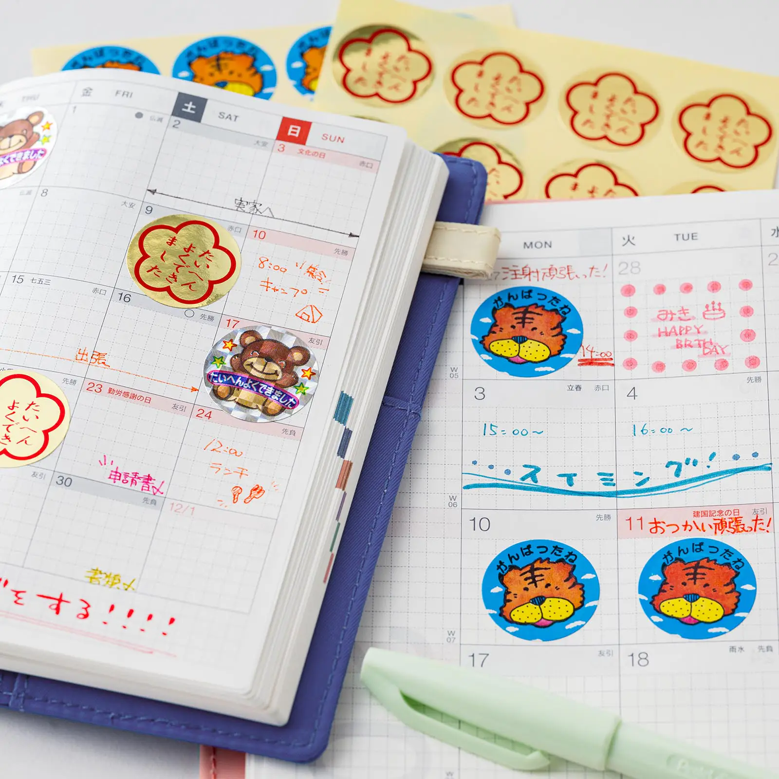 All designs are round and have a diameter of 2.5 cm. They would be great for attaching on the calendar, the techo page on a happy day and to reward yourself for your hard work. Give someone plenty of kudos with these cute illustrated stickers!