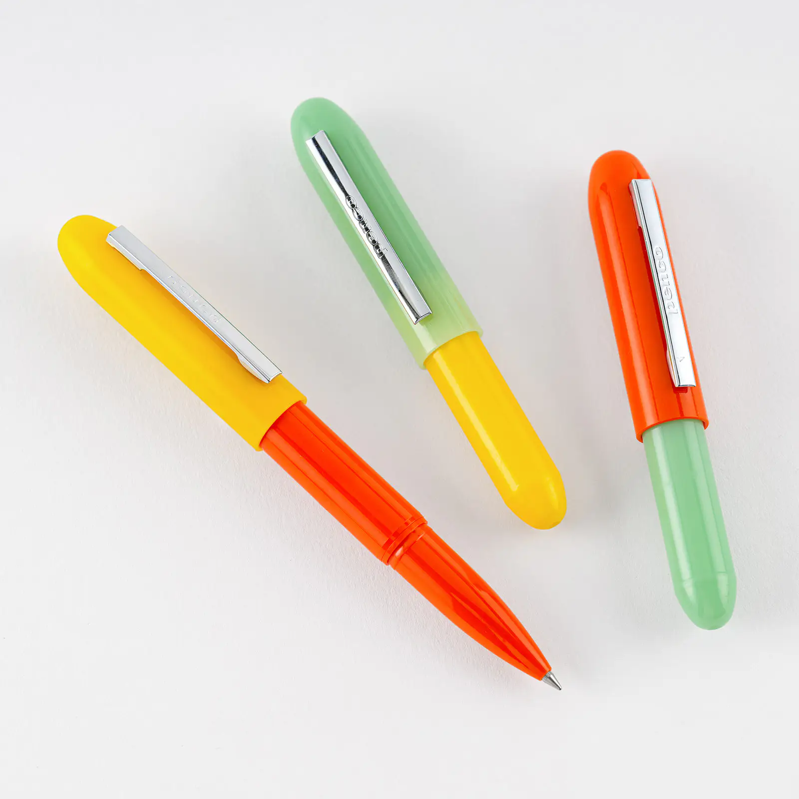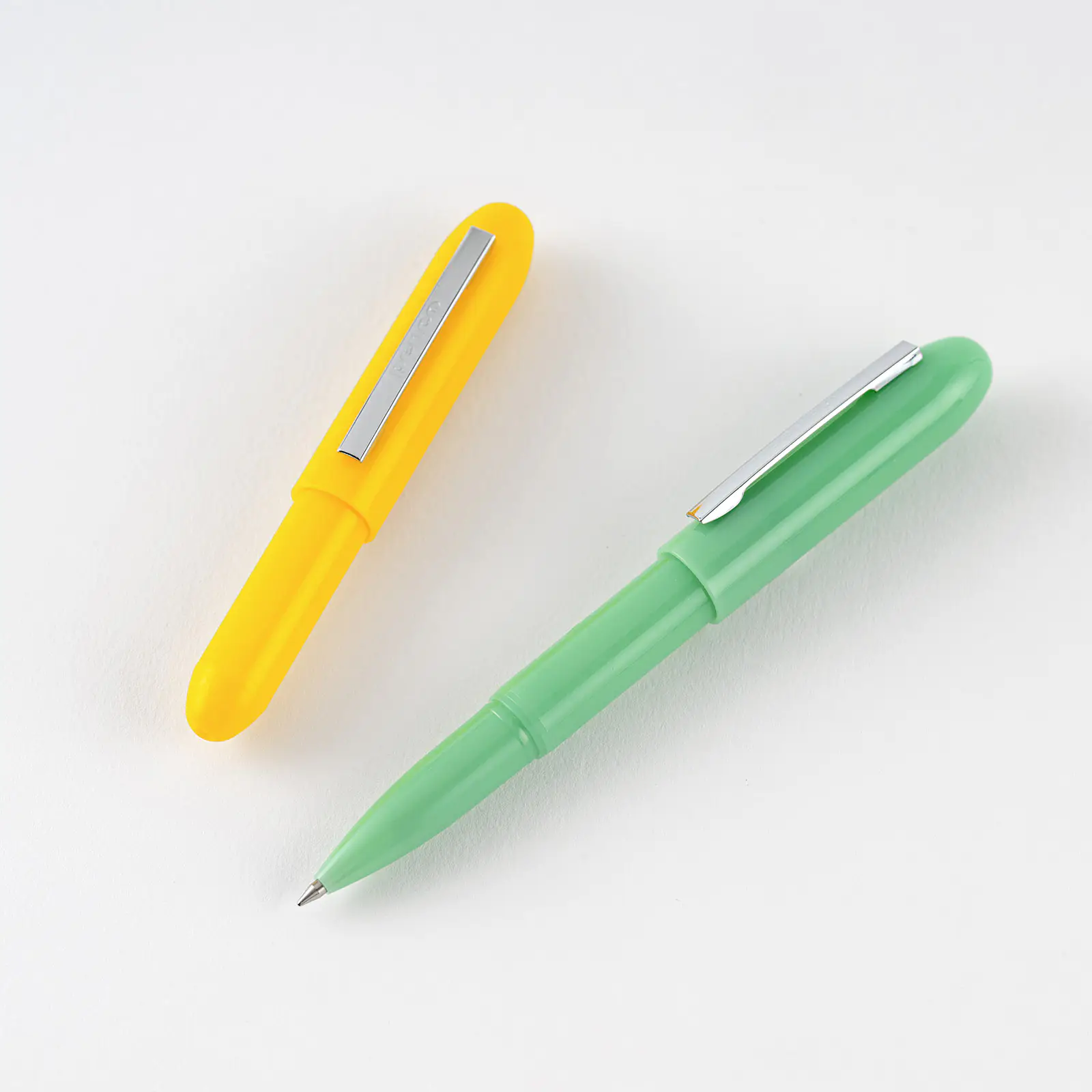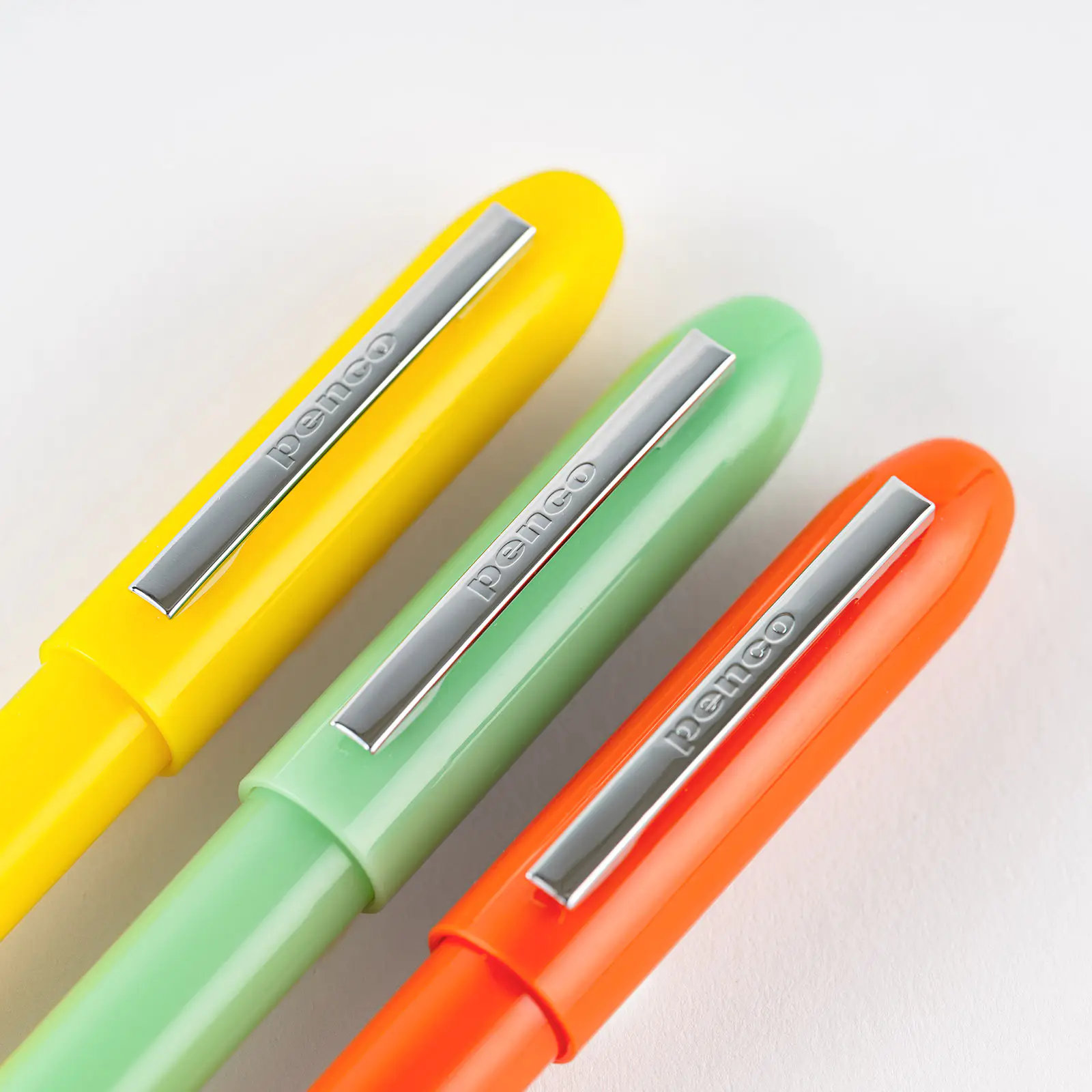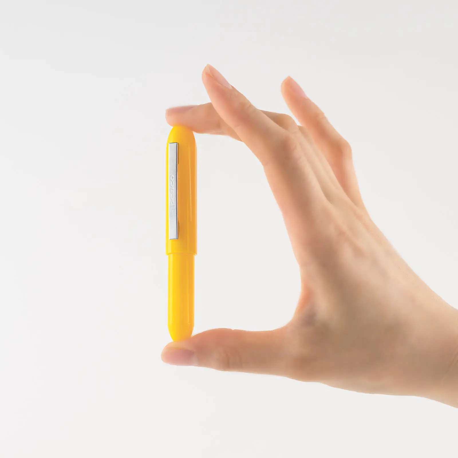 On the back side of the cap is the penco logo. The bullet-like shape is beautiful, smooth, streamlined, and vivid colors will boost your mood. Each color — mint, yellow and orange — give a different impression, so you can choose the one that best suits your taste. You can use refills for prolonged use.