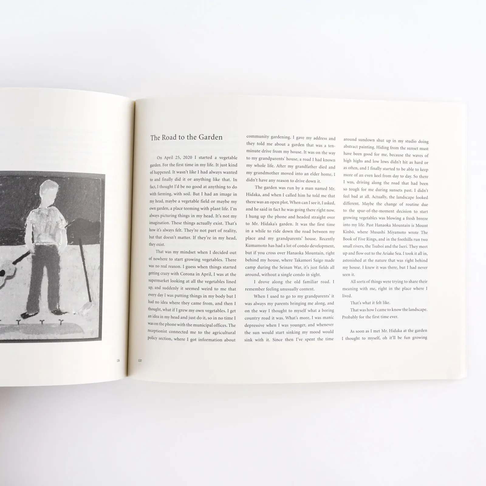 The fields, towns, mountains, rivers, and sea of Kumamoto, where Sakaguchi lives, along with the landscapes from his travels are captured with a photographic level of detail.