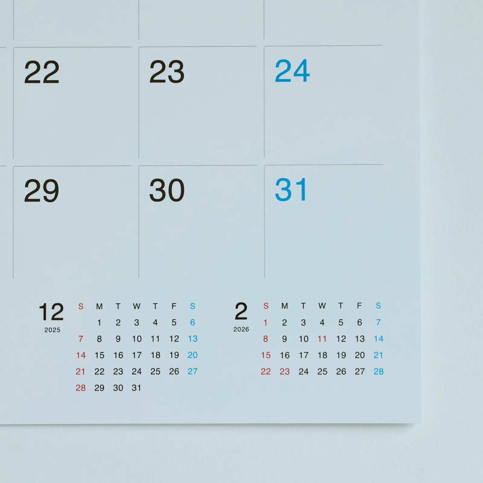 The artwork for the month numbers come from woodblock print pieces by printmaker Kurumi Wakaki. Wakaki, who’s been known to try all kinds of creative expressions—such as drawing a face on the back of her own shaved head (!)—created some truly wonderful woodblock prints we saw at the Taro Okamoto Museum of Art in Kawasaki. For the 2026 Whiteboard Calendar, we asked her to depict the month numbers using her woodblock prints. They’re charming, cute, and full of humor. You’ll feel like you could have a fun year ahead... yet there’s still something distinctly artistic about them. That’s the kind of whiteboard calendar we’ve created.