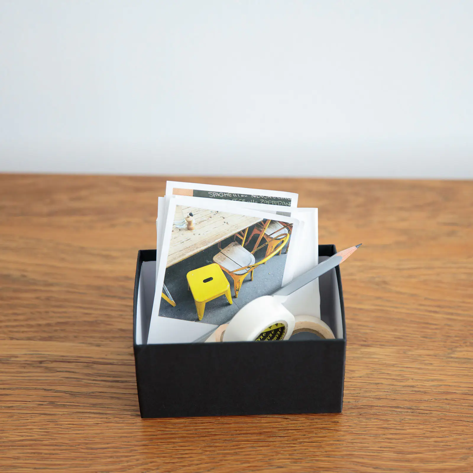 The format is sure to be nostalgic for those who recognize it, as it nearly matches the size and shape of a Polaroid photo. The pages may be thinner than one, but when you first start using this desktop calendar the total thickness of all the pages together comes out to about 3 cm (1.2"). You can either set the calendar flat on your desk or assemble the stand that’s available by slits on the chipboard on the back of the calendar.