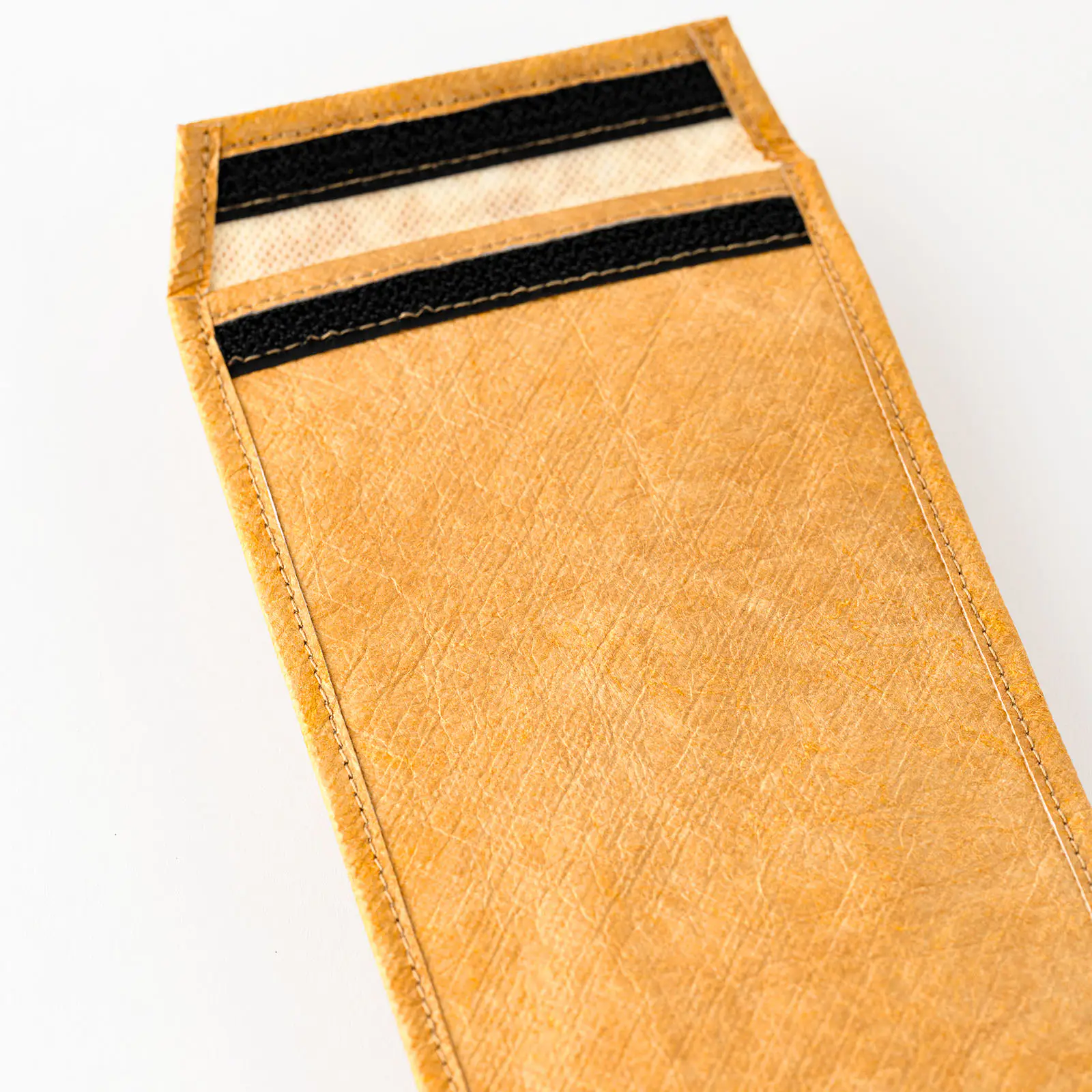 This durable and reusable envelope is shaped like a standard Japanese paper envelope, which is vertical. We created it in hopes to make envelopes reusable instead of disposable.