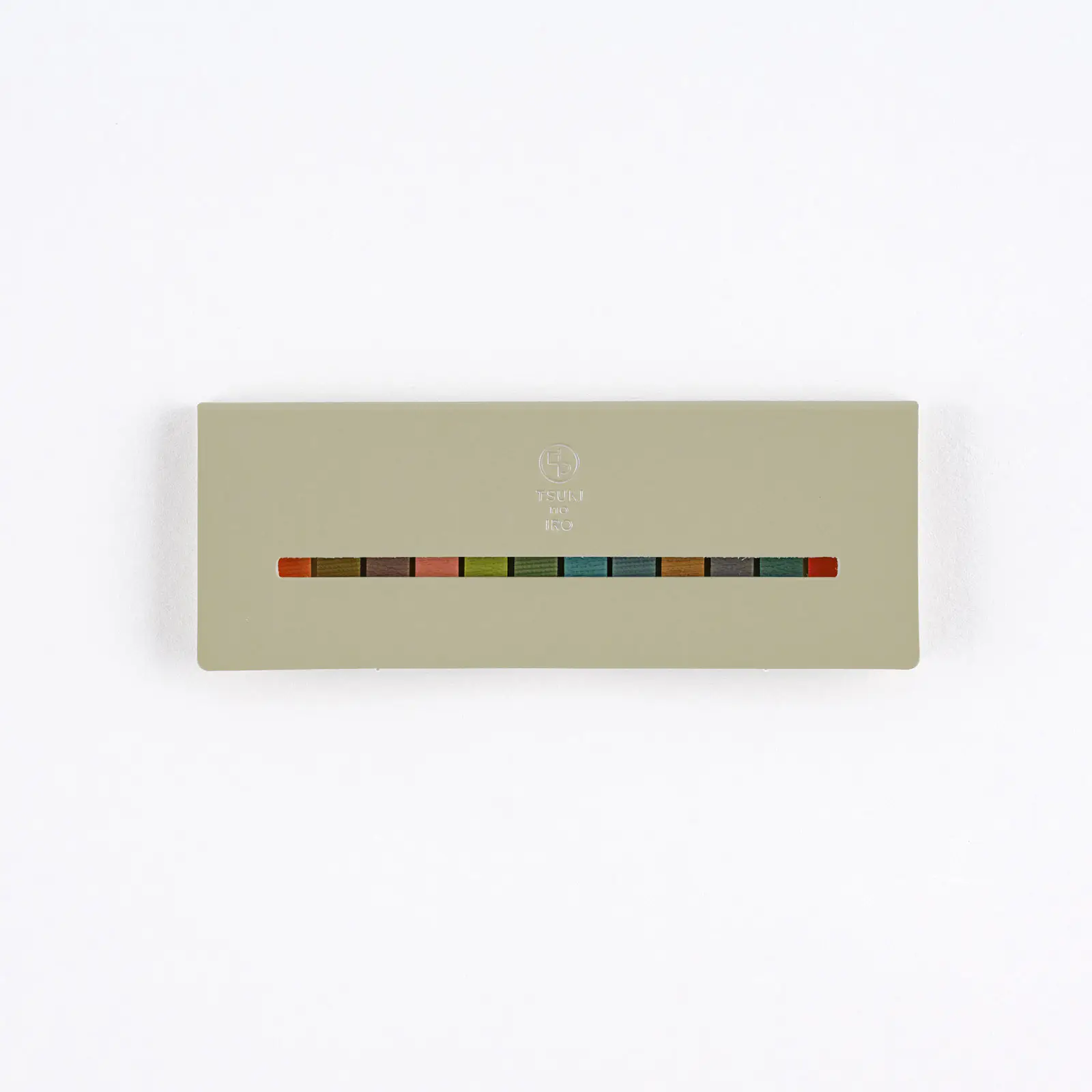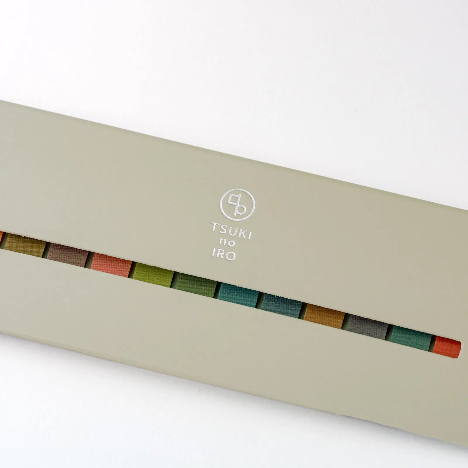 The notes come in a custom case featuring the TSUKI no IRO logo, with a slit that lets you see all 12 colors at a glance. The case fits neatly into your techo cover pocket for easy carrying.