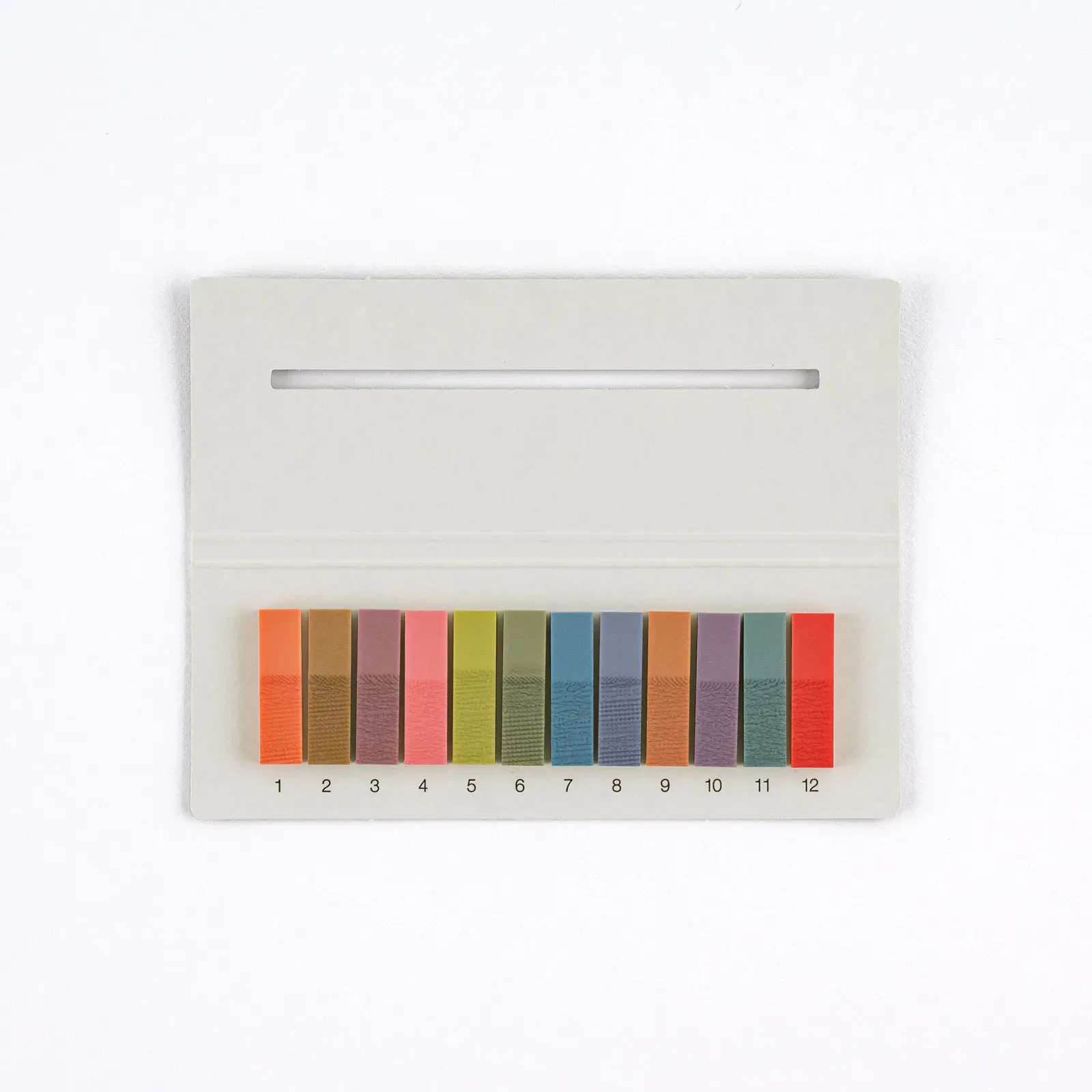 The TSUKI no IRO Translucent Sticky Notes are a 12-color set designed to match the width of the squares in the Hobonichi Techo Original monthly calendar. These notes look clean when placed on the page and are perfect for scheduling, marking, or organizing your plans.