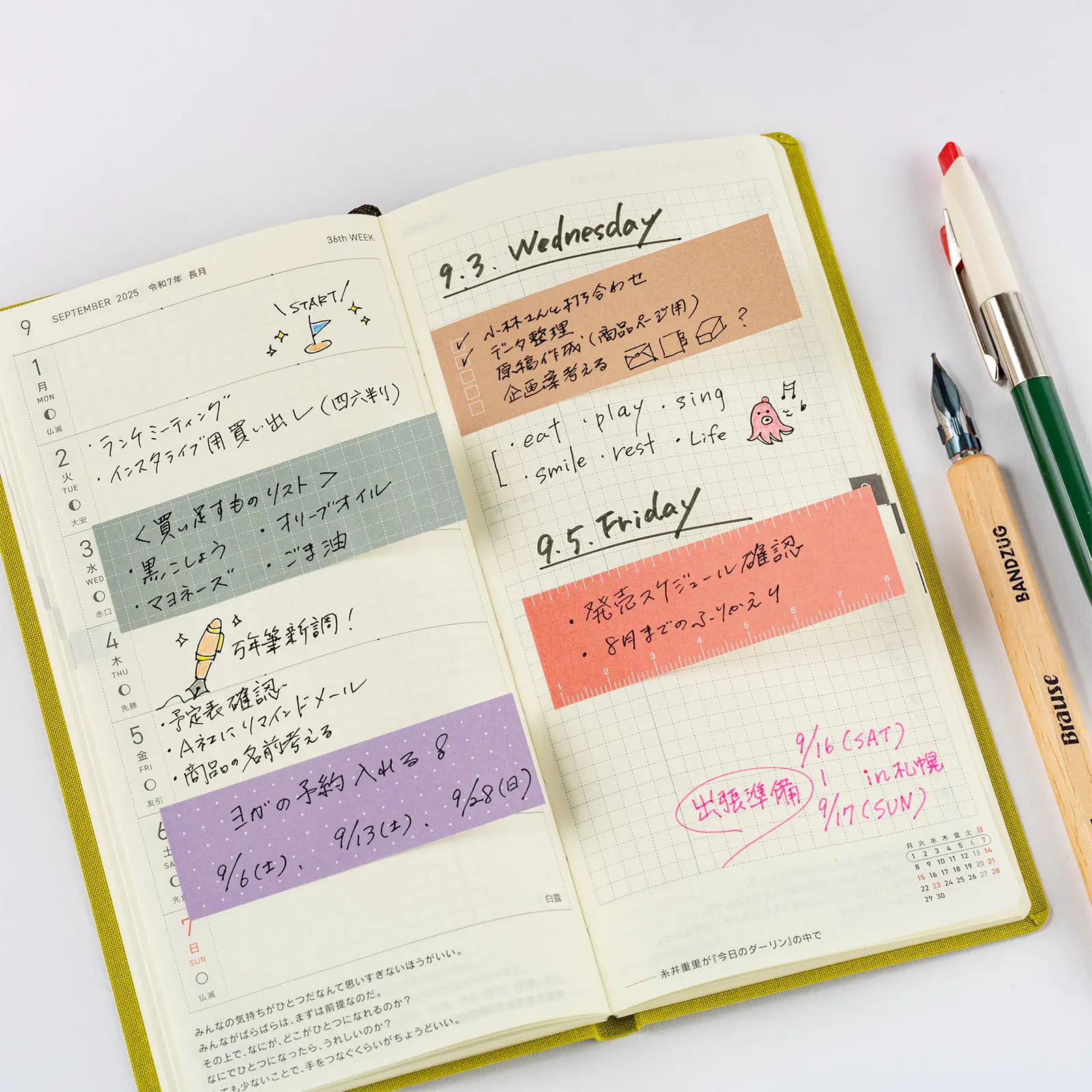 The Guide type includes functional designs with built-in writing guides, inspired by the monthly colors from September to December in the Hobonichi Techo. The motifs are drawn from features like the To Do lists on daily pages or the dot grid on memo pages in the Planner. They’re ideal for organizing tasks, adding extra checkboxes, or using as a study aid.