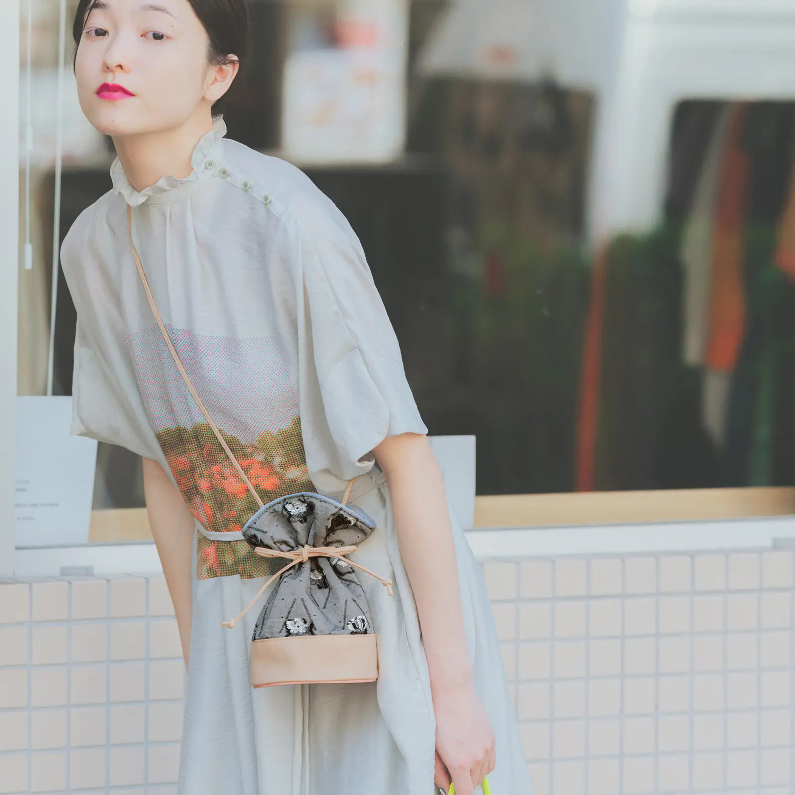 This drawstring “mini bucket” bag was made from the same material as the Tokyo in bloom/rabbits techo cover.