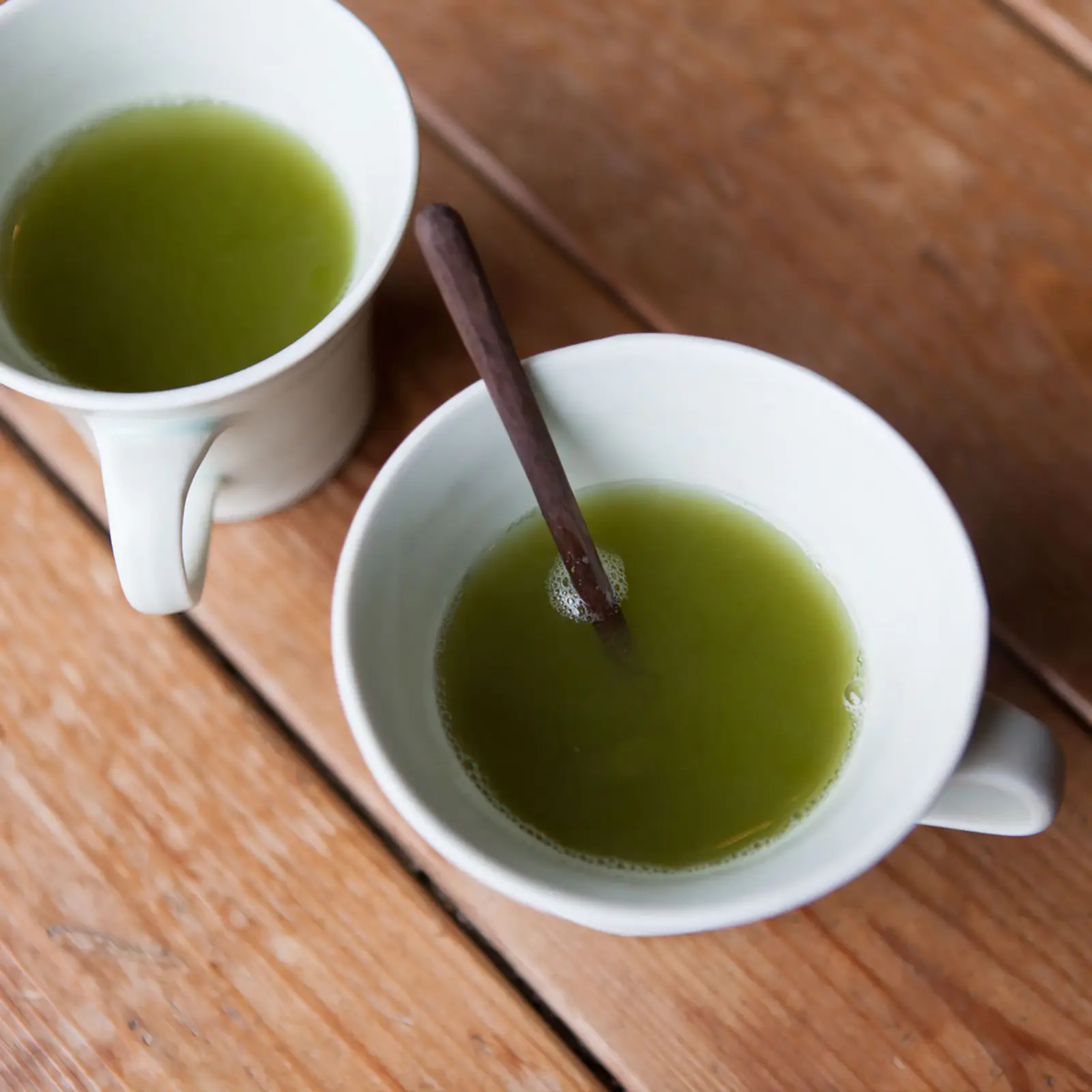 This crushed green tea uses a rare variety of tea leaves called “Haru-midori,” grown in the mountains of Kagoshima Prefecture.