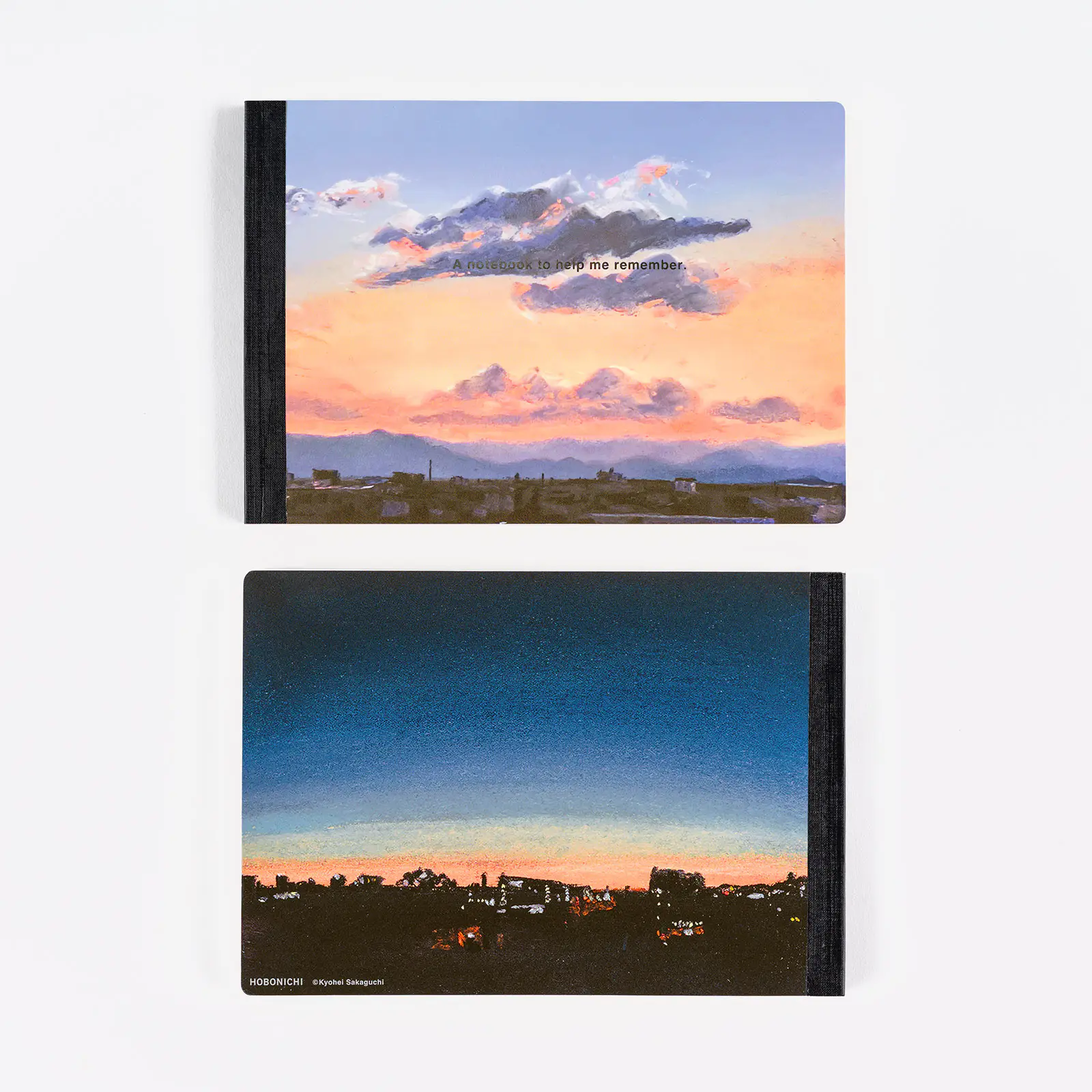 To capture the expansive, uplifting feeling of the landscape stretching across your field of vision—as Sakaguchi’s paintings often do—the notebook was designed to be used horizontally in landscape format.