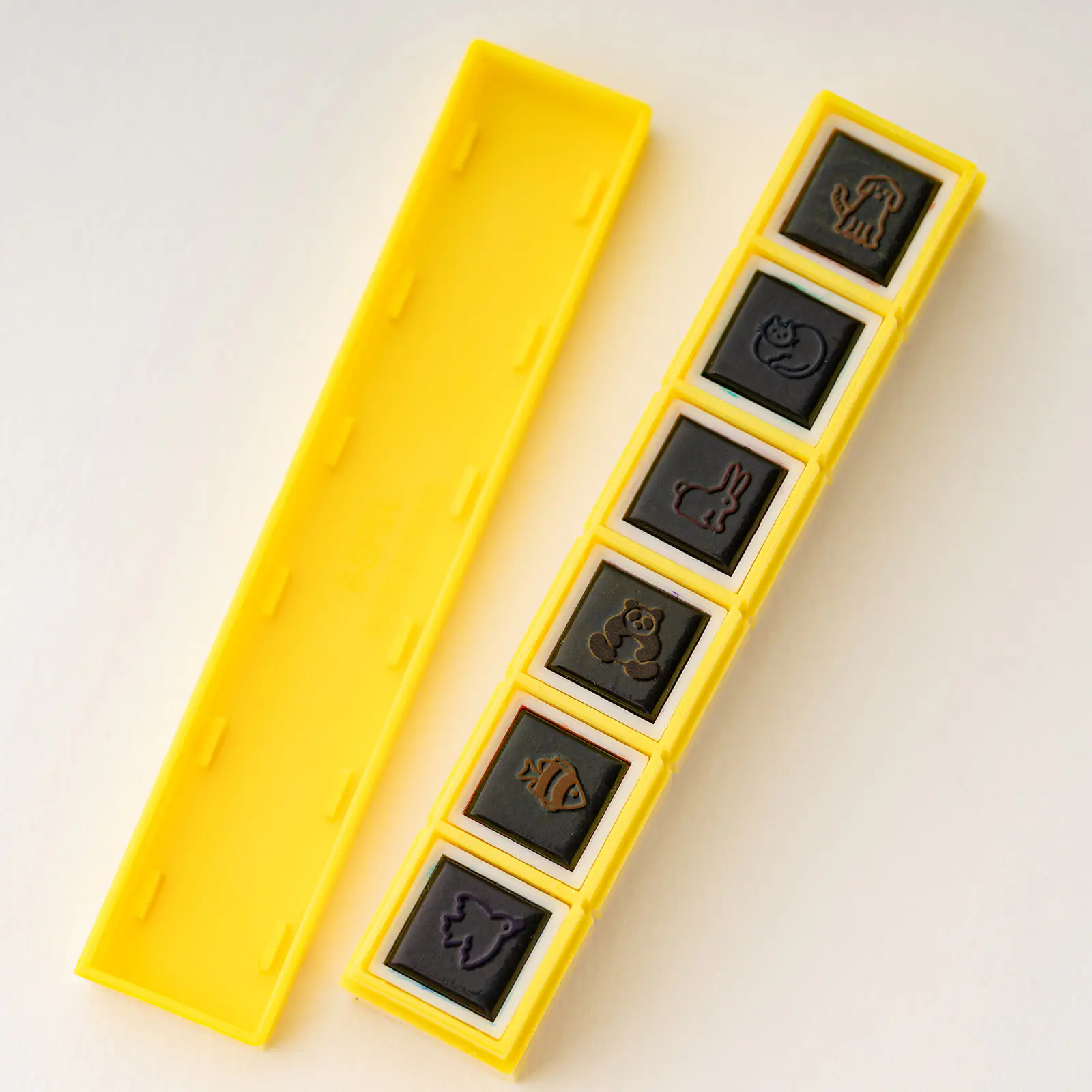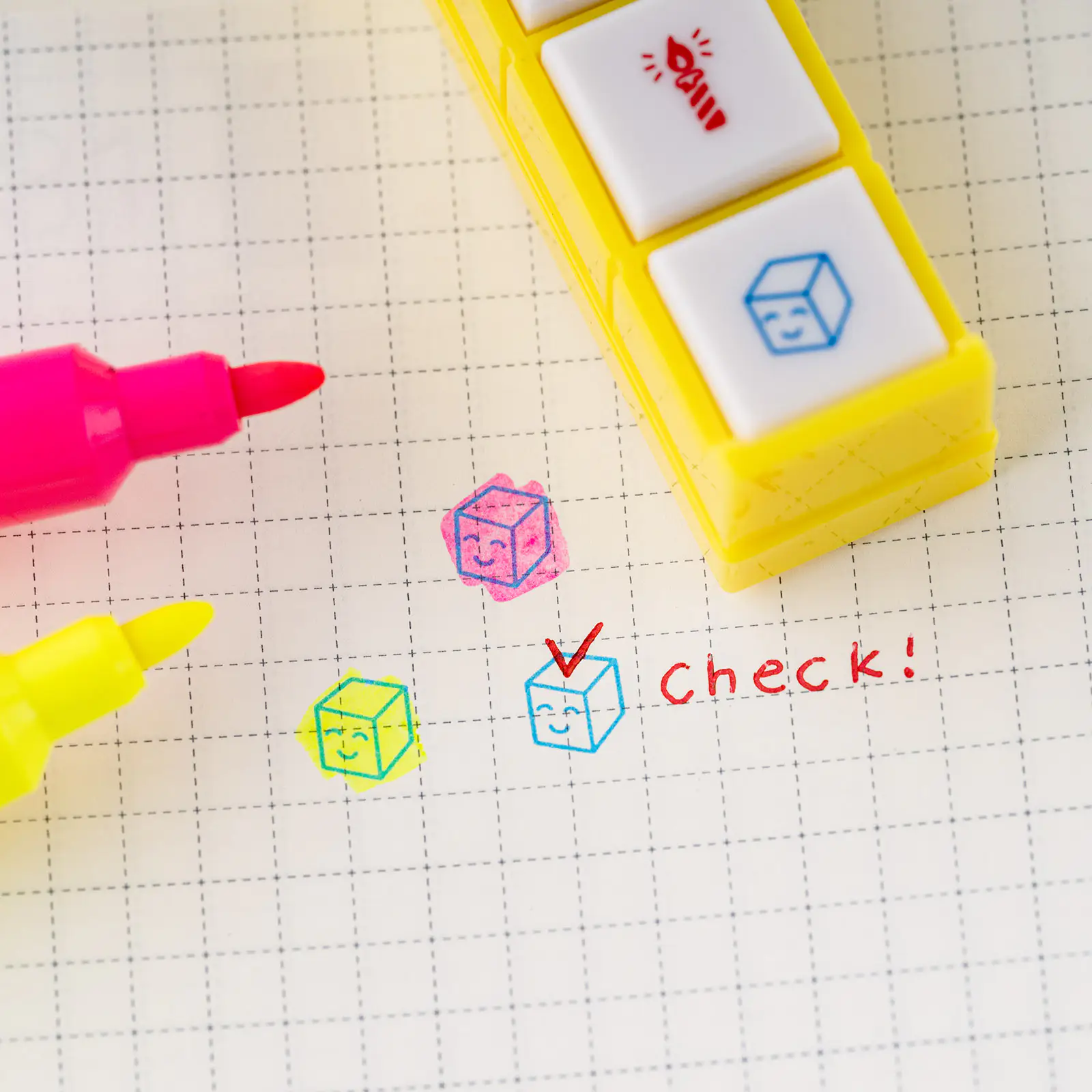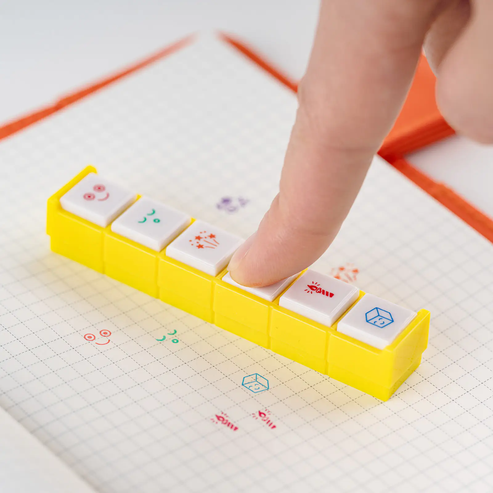 These stamps are self-inked, so you’ll be able to stamp icons easily by simply placing the stamp over where you want to stamp it and pushing the button. The button-like feeling makes it fun to stamp.