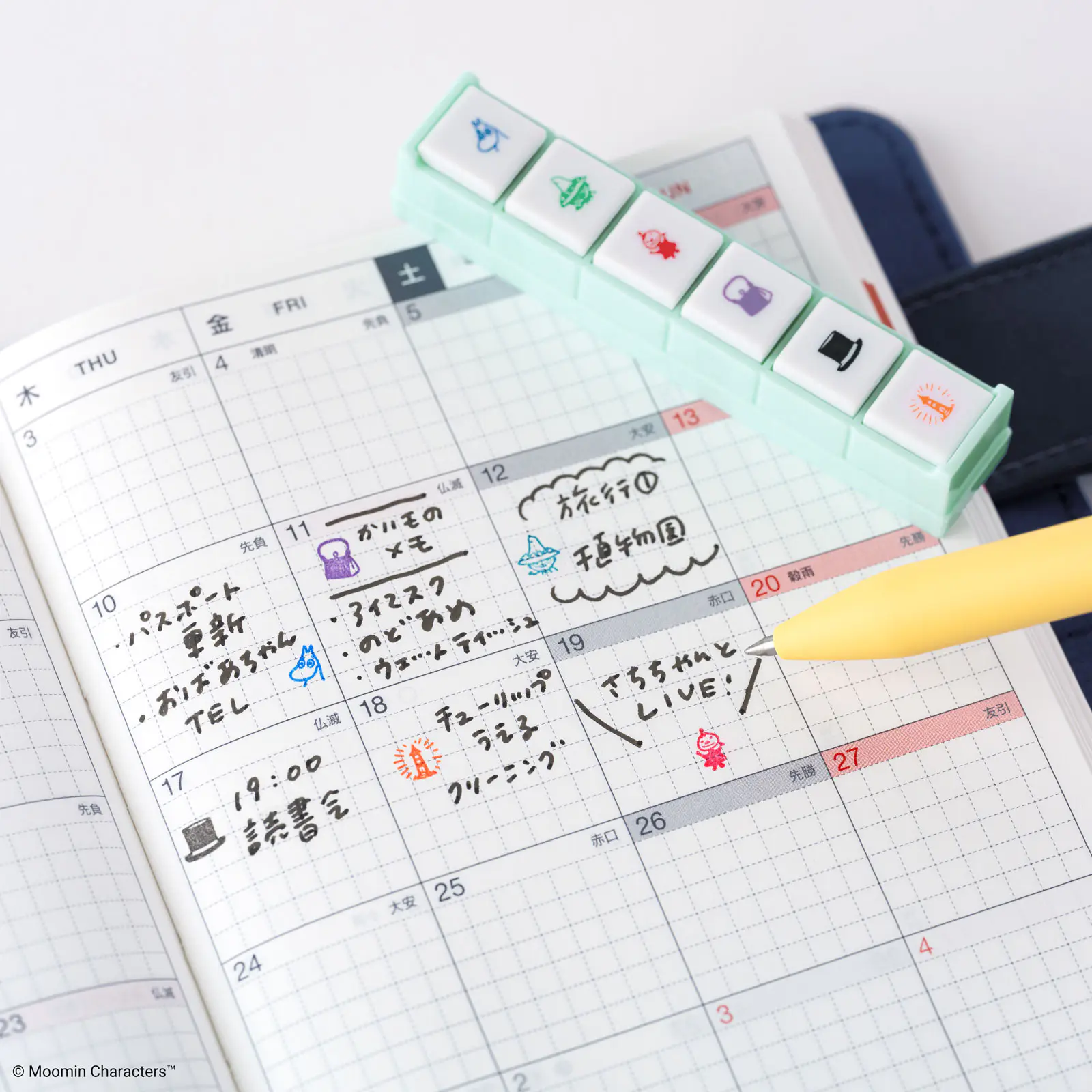 Moomin is a beloved series created in 1945 by Finnish author, painter, and artist Tove Jansson. This push-button stamp features six adorable Moomin icons that can be used as fun accents in your planner.