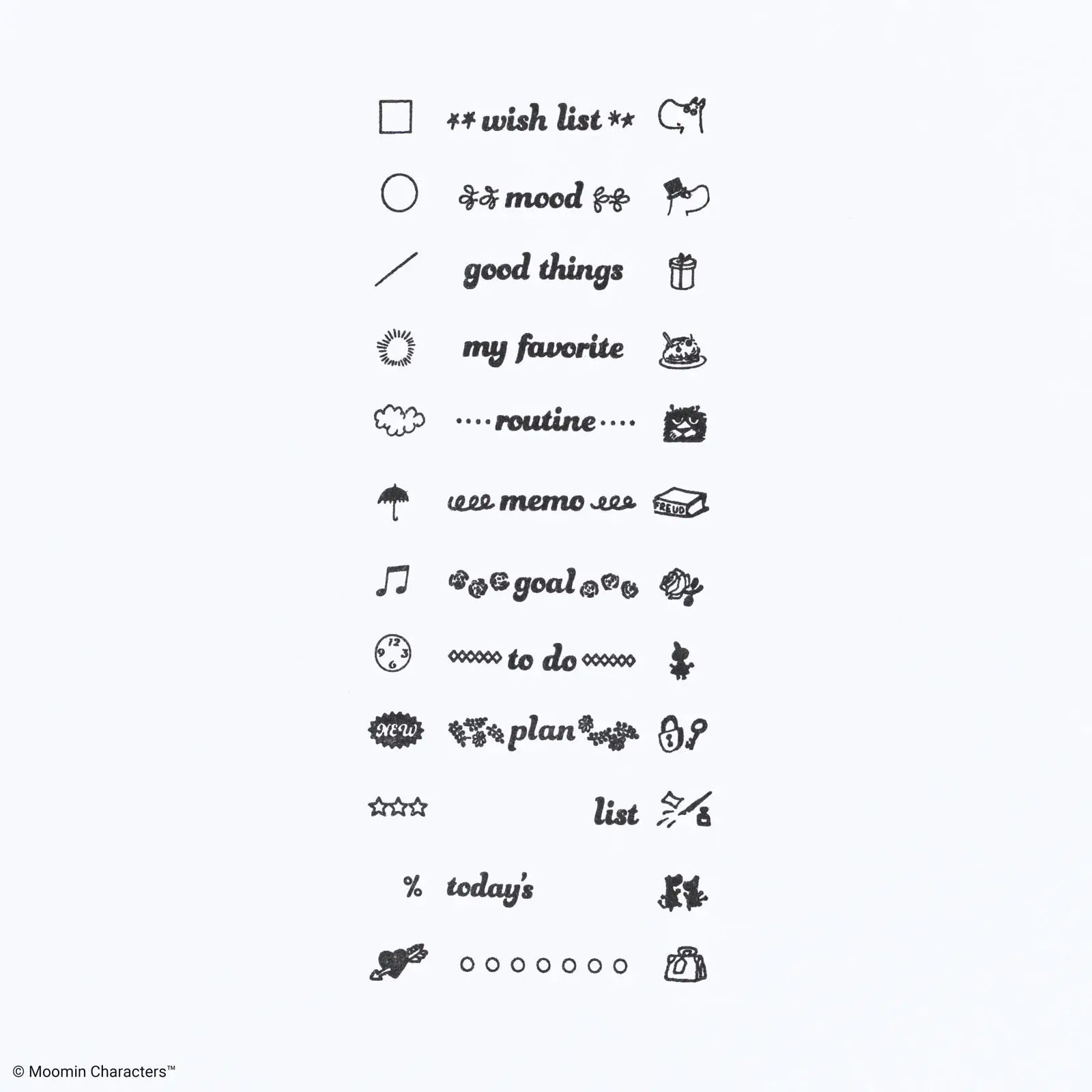 or combine a slash icon for writing the date with Moomintroll and “wish list” to create a personal wish list.