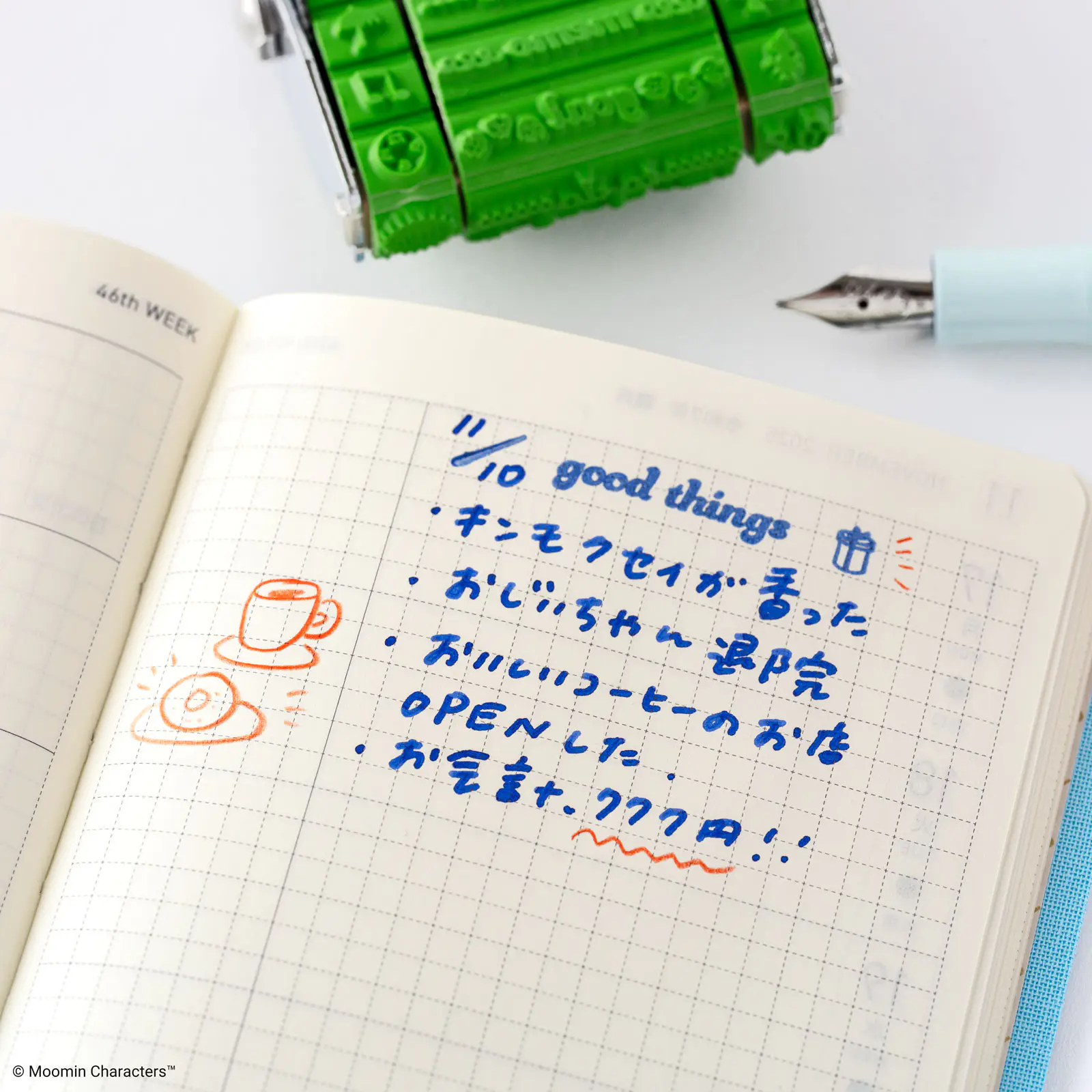 This rotating stamp is designed for use with your techo and features illustrations from Moomin, the beloved series created in 1945 by Finnish author, painter, and artist Tove Jansson. The stamp is easy to use and produces crisp, clear impressions with a light touch.