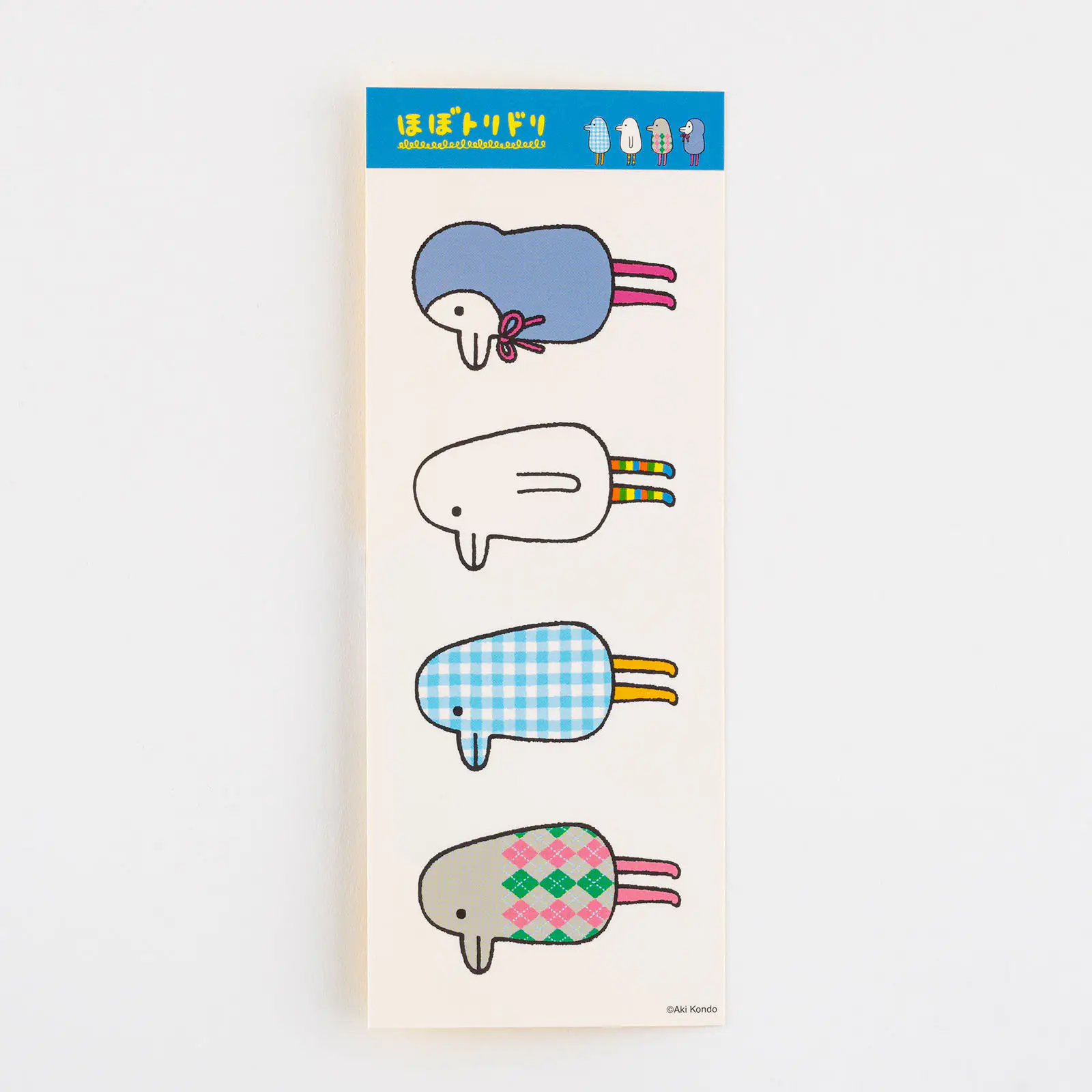 We’ve created many different collaboration items with Hobotoridori for the Hobonichi Techo 2025 Spring lineup: “Sparkling Hobotoridori” for the Weeks, the Weeks-size Hobonichi Pencil Board “Hobotoridori (Illumi-dori)”, the “Hobotoridori Die-Cut Memo Pad” with five different Hobotoridori designs, washi tape and stickers that look cute when used in the Hobonichi Techo, and two sizes of Drawer Pouches.