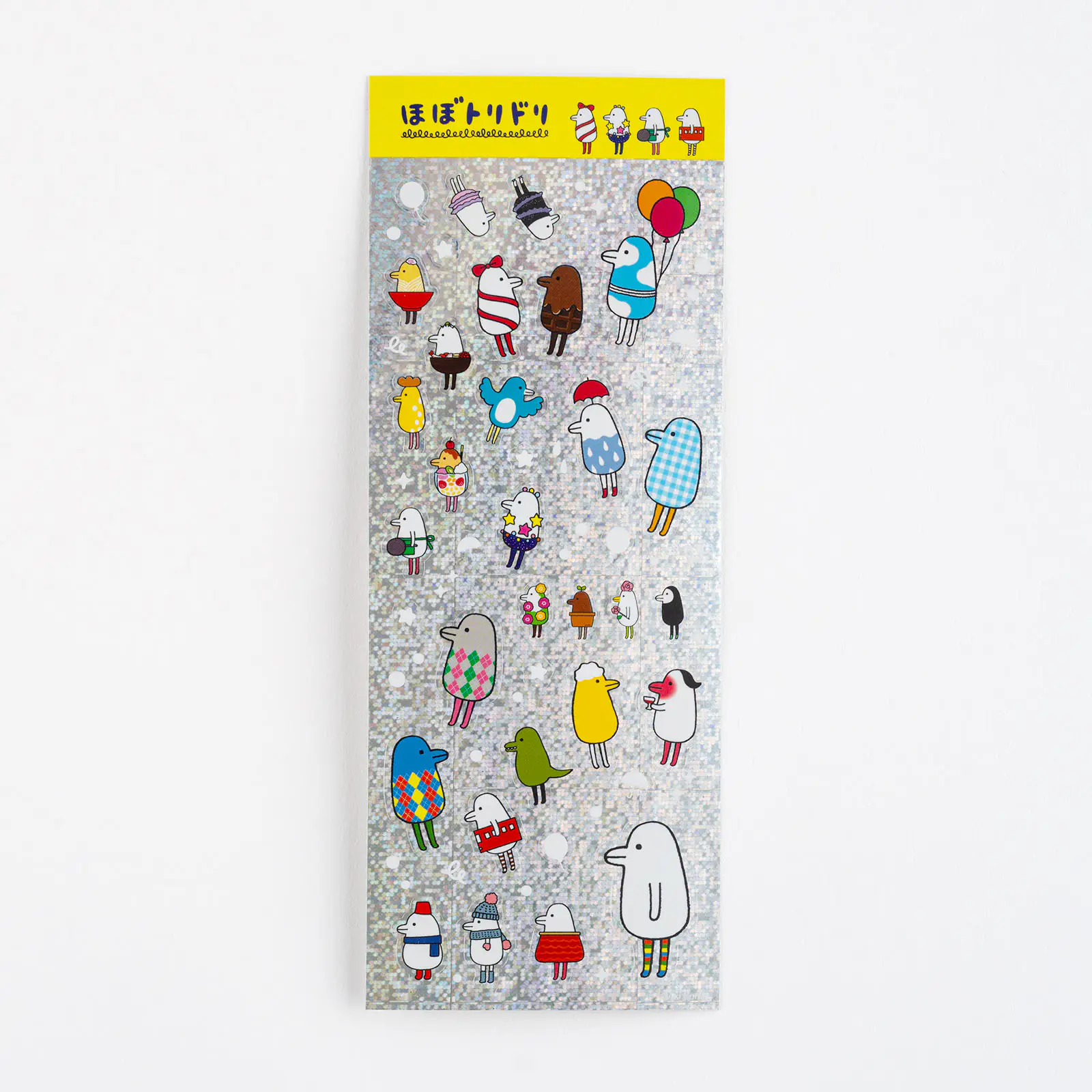 Party is filled with Hobotoridori in various sizes, all arranged on a sparkly background. It truly has a party atmosphere, with some characters based on food and drinks and some dressed in fancy clothes. These stickers can provide a nice, sparkling accent to your techo.
