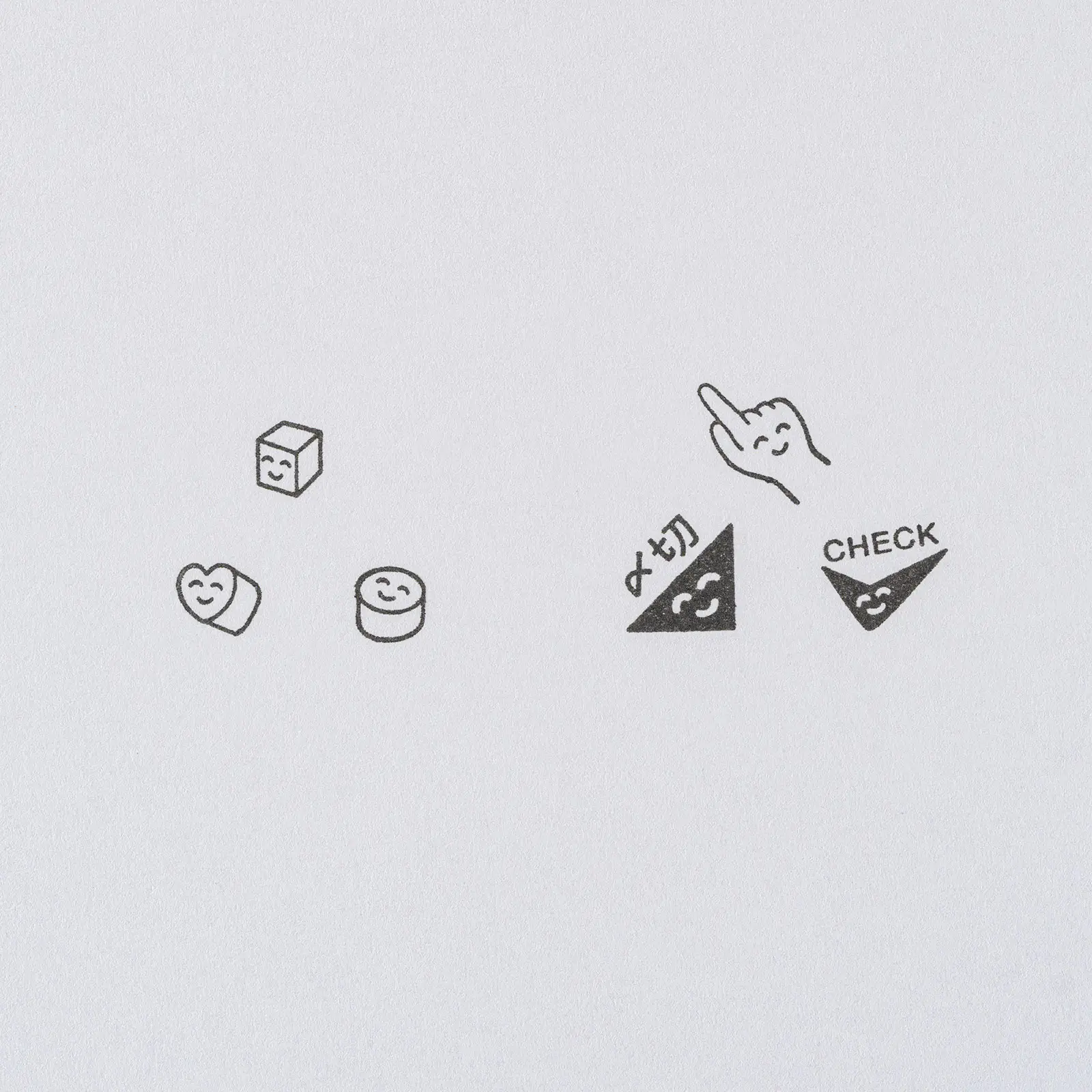 We created two types of original stamp sets you can casually use on your techo. Each set includes three small stamps.