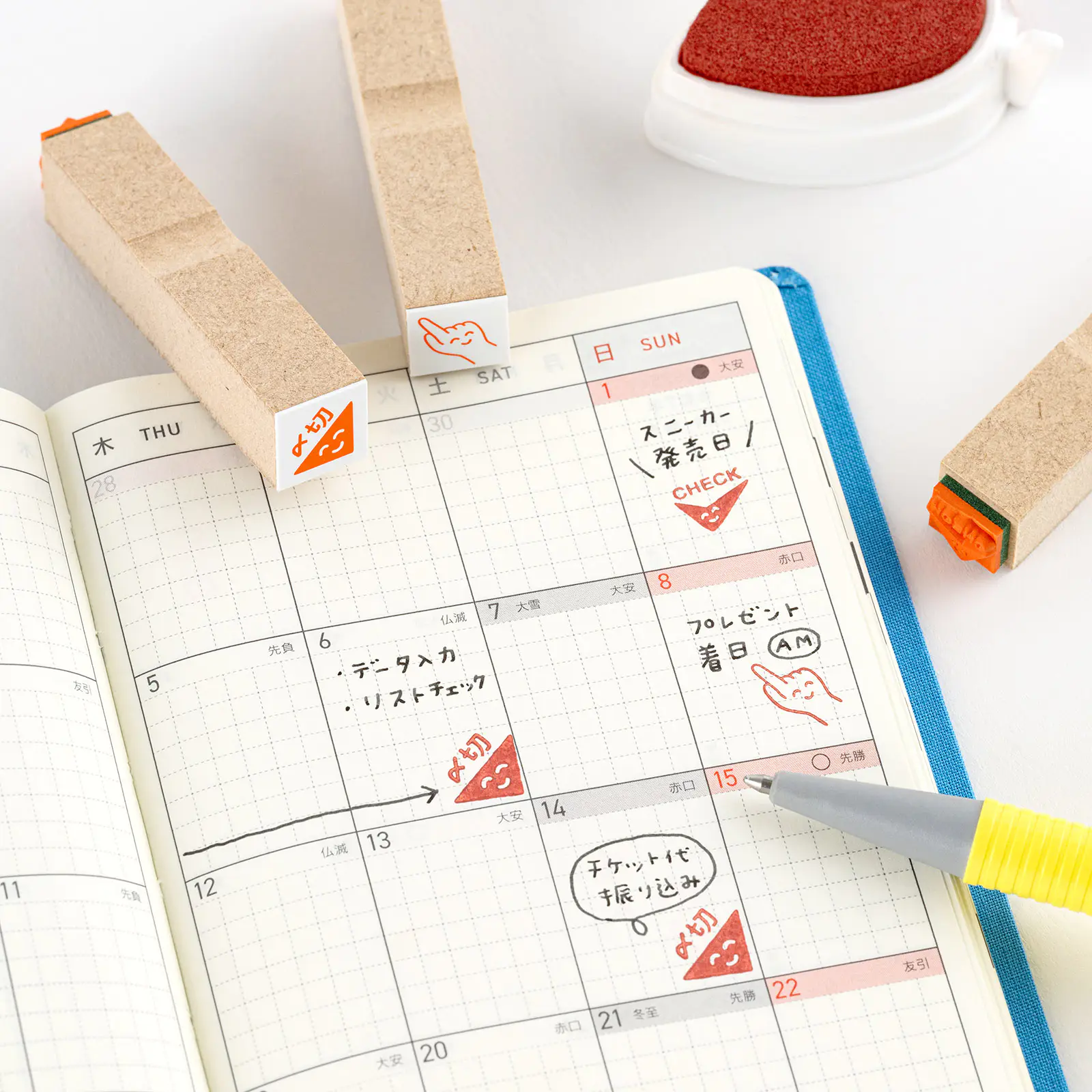 These cute stamps have smiling faces to cheer on their user. Use it on the monthly calendars, or the daily pages or memo pages as well.
