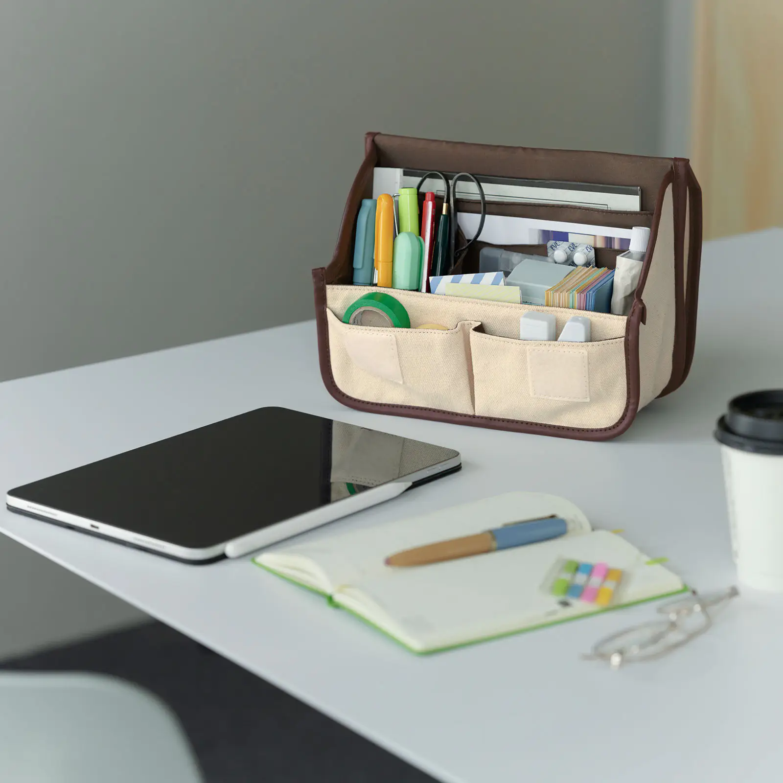 This pouch allows you to store lots of small items on your desk.