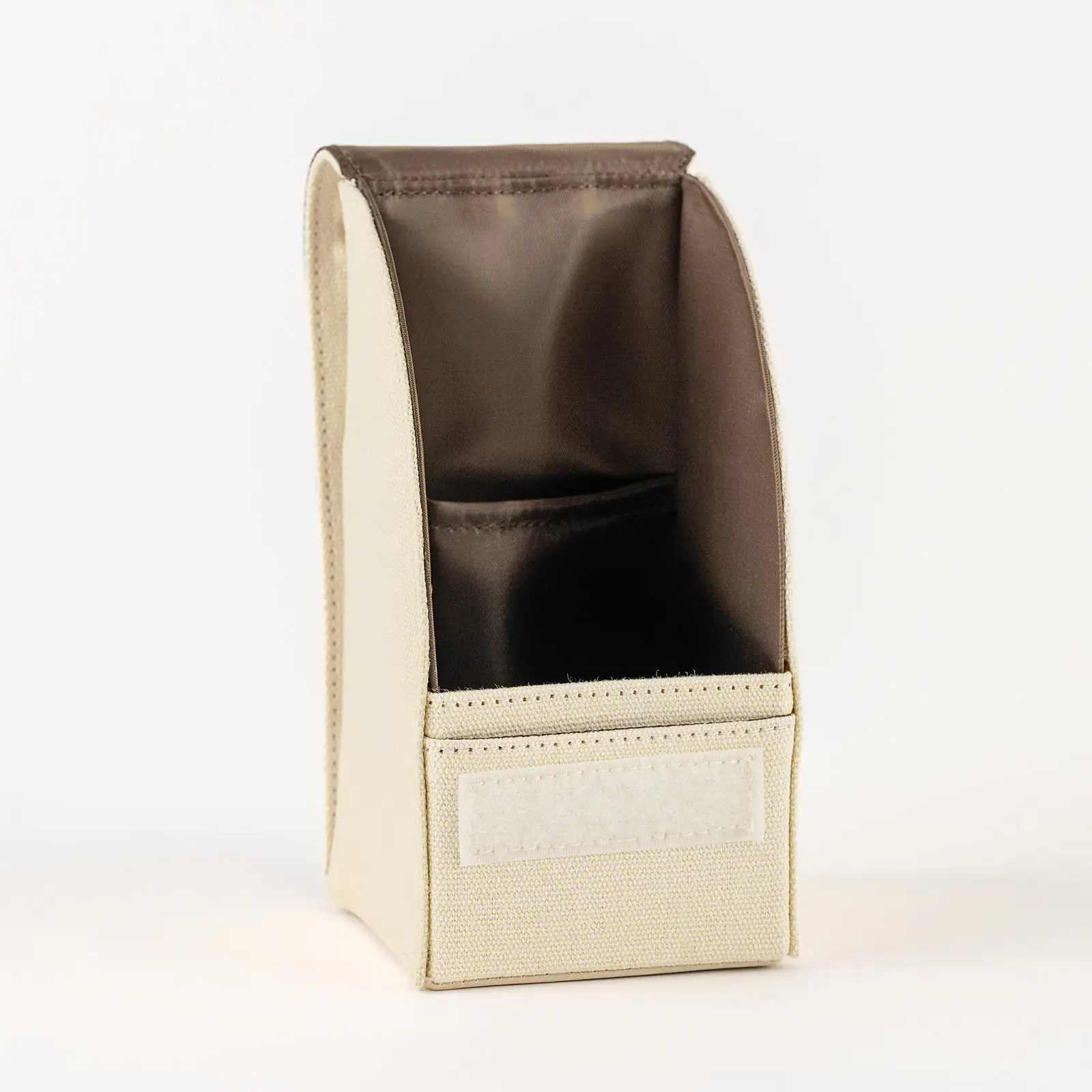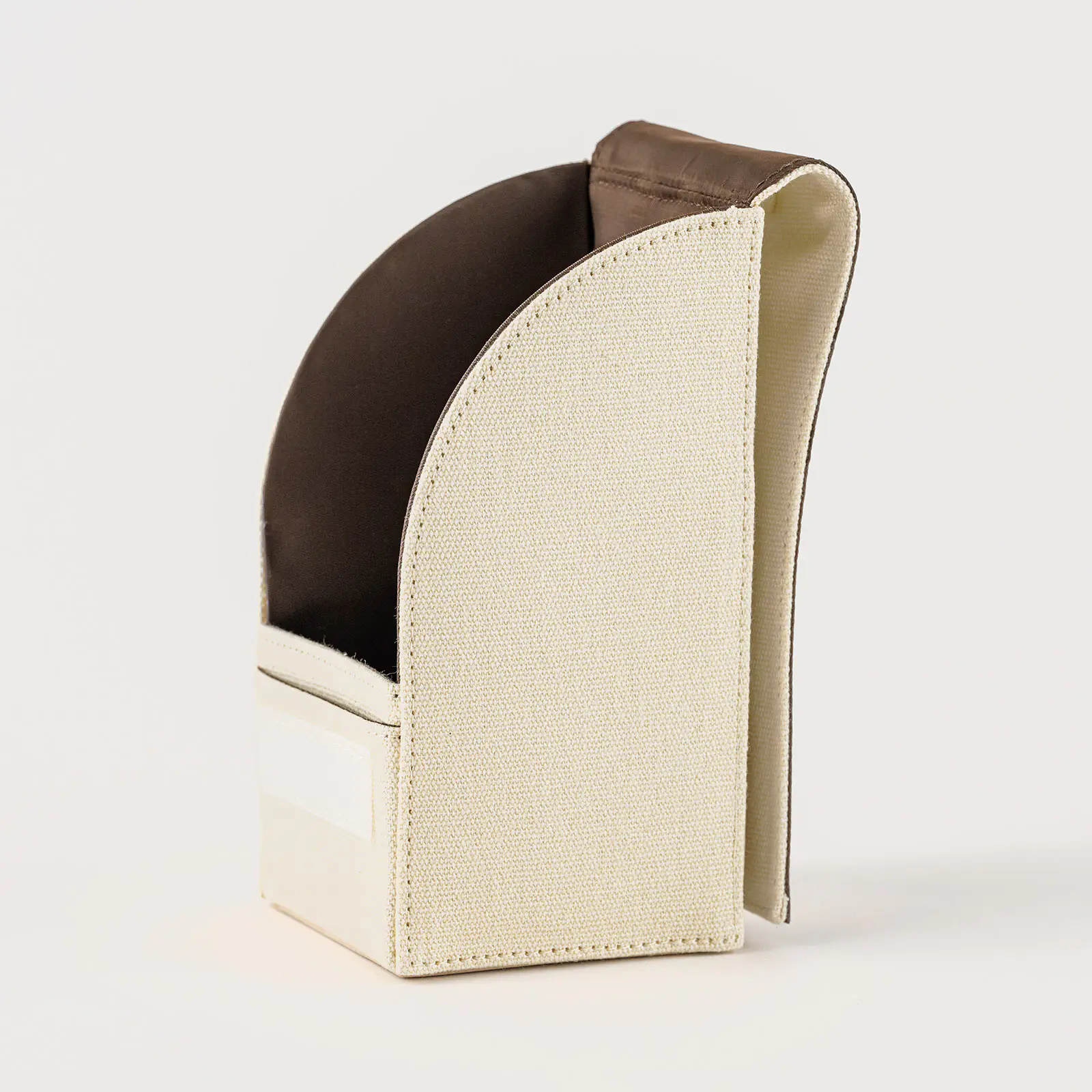Canvas: Ivory Brown is made with a natural canvas material. The interior is a deep brown, giving the pouch a simple yet sophisticated design.